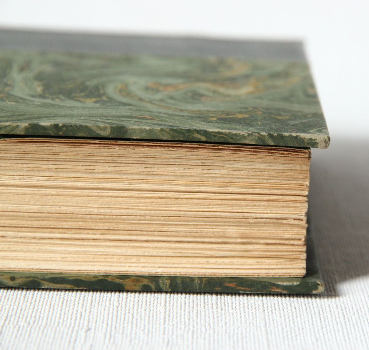 Petit frottement de la reliure au niveau du haut de l'une des tranches, j'ai fait une photo rapprochée pour meilleure appréciation, c'est un défaut très léger.