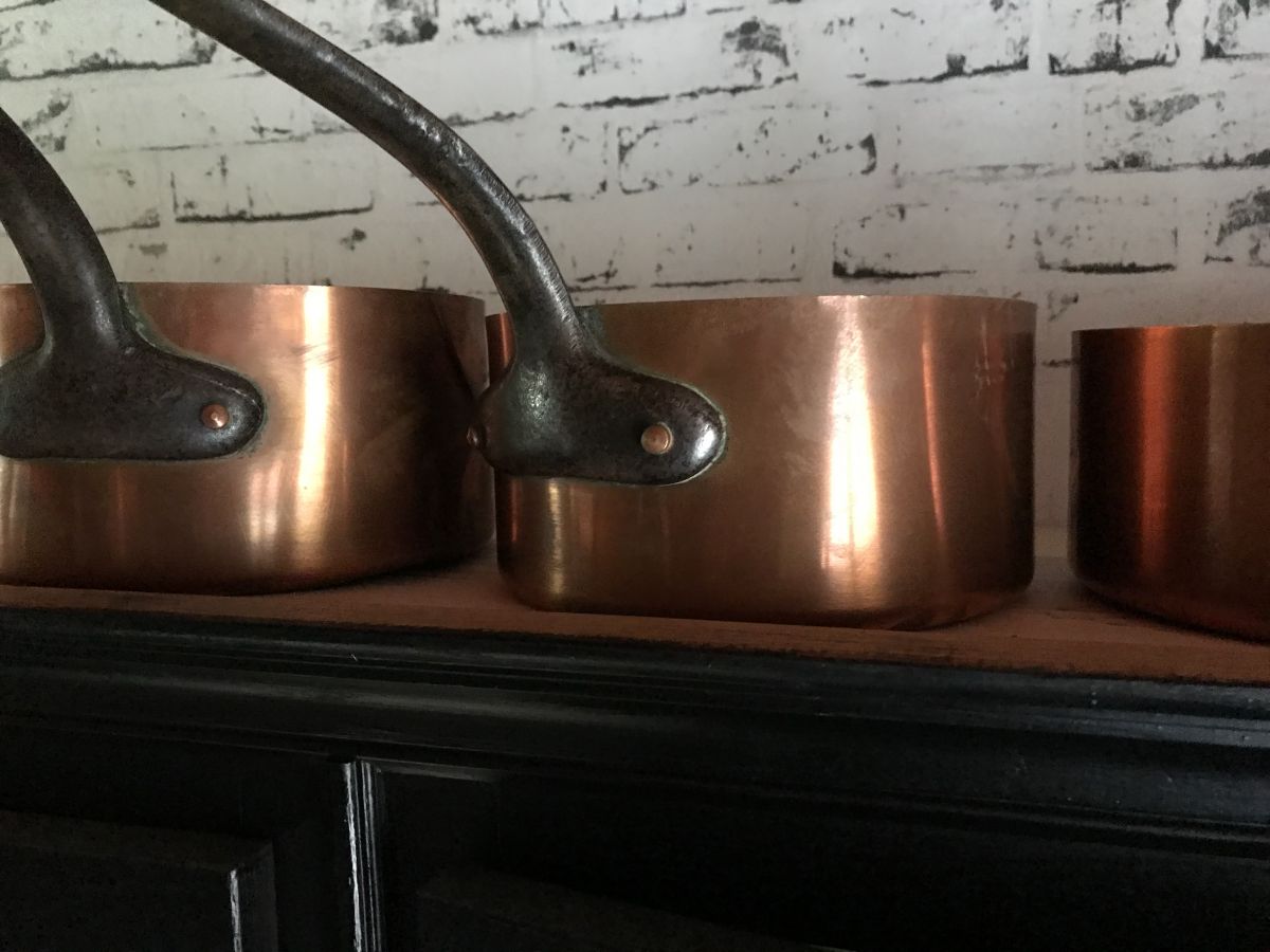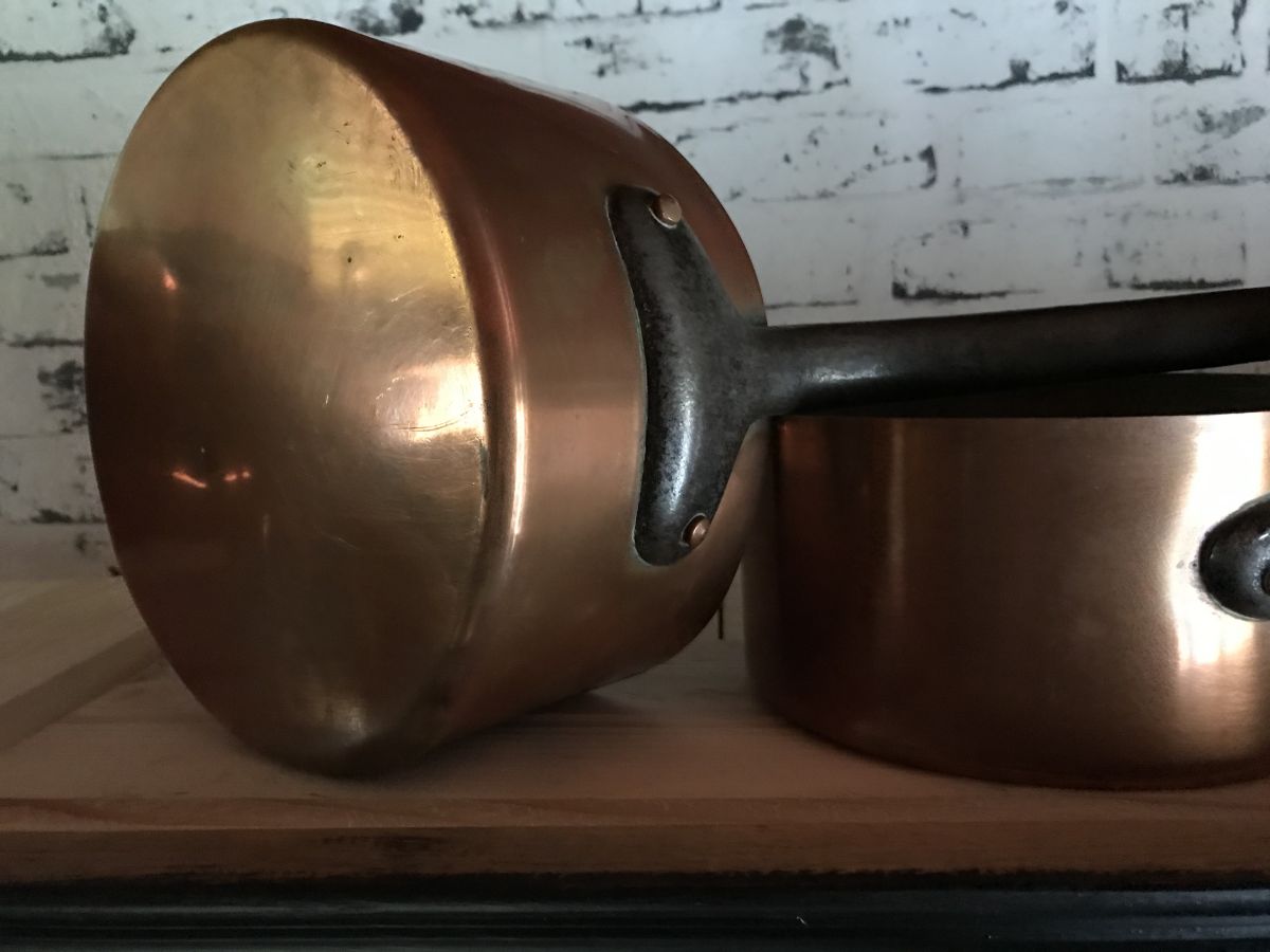 Batterie de 6 casseroles ancienne en cuivre étamé