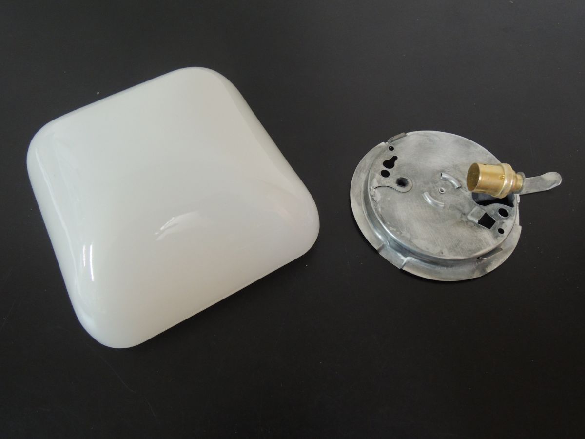 Petit plafonnier vintage avec une forme peu fréquente. Le support est en acier, il est équipé d'une douille à baïonnette de type B22 (peut se changer) et non câblé.