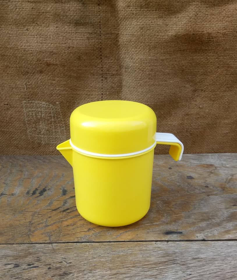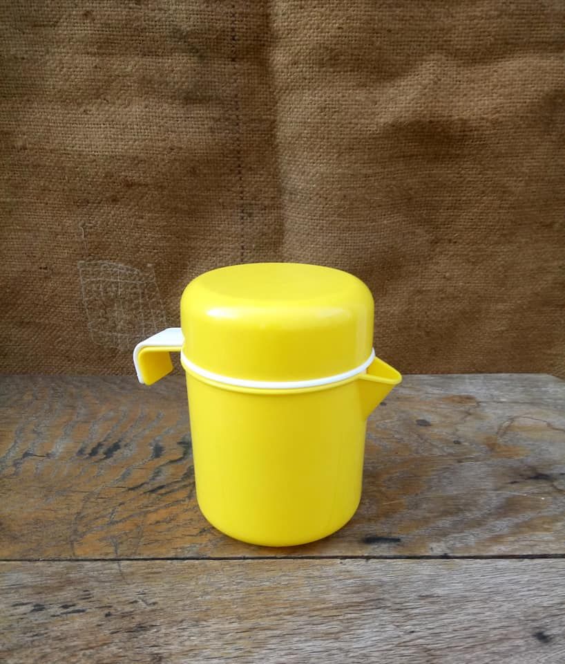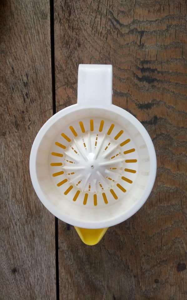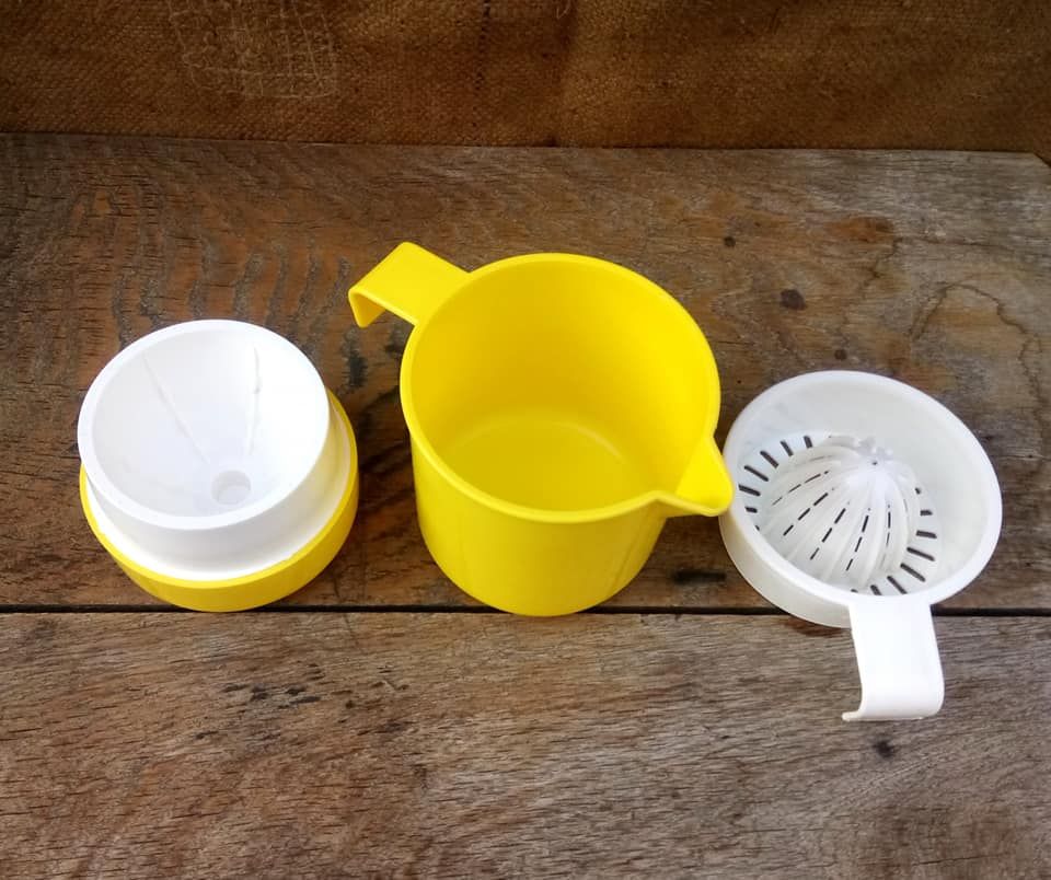 Presse agrumes vintage avec bec verseur en plastique jaune