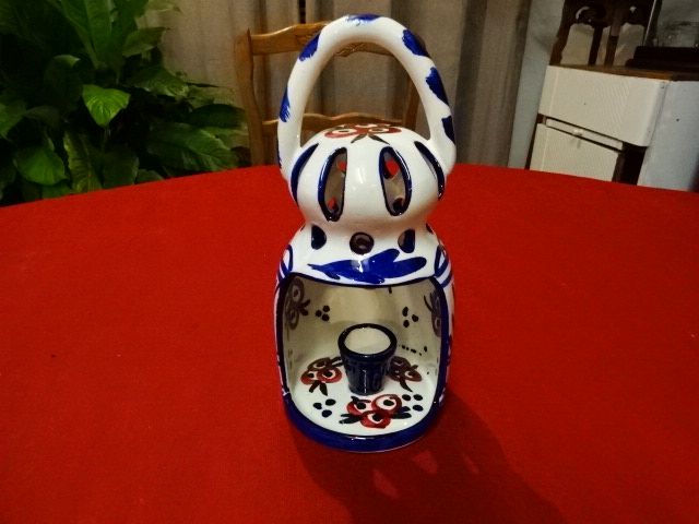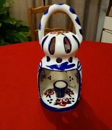 Belle petite lanterne en céramique colorée pour petite bougie ou bougie led ( non fournies). Peut servir de veilleuse, idéale pour les soirées d'été avec une bougie anti- moustiques.