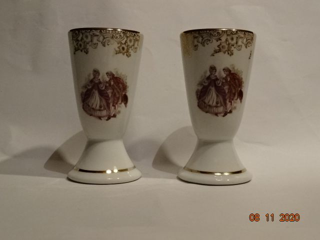2 très beaux mazagrans porcelaine de luxe décor or scène gal