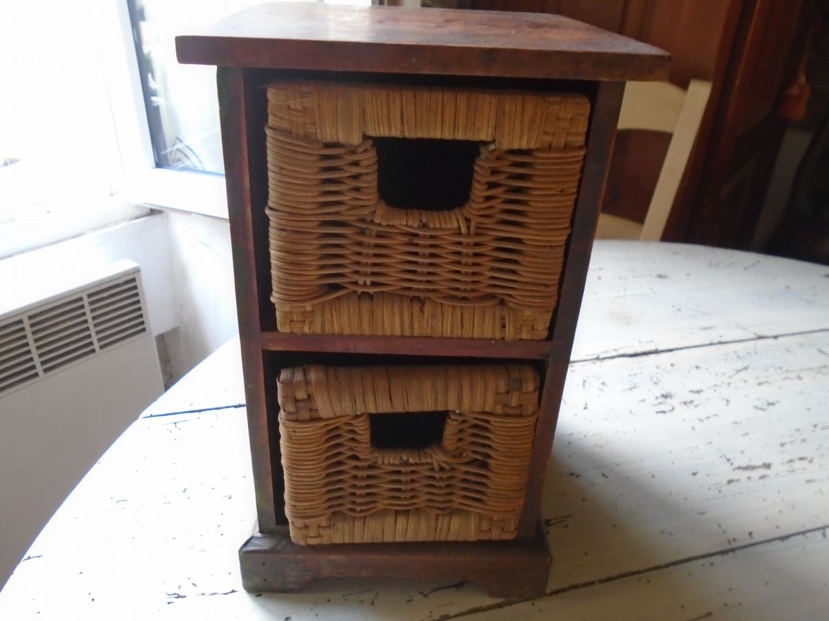 Petit meuble à 2 tiroirs en osier, pour boite à bijoux, maquillage, vide poche