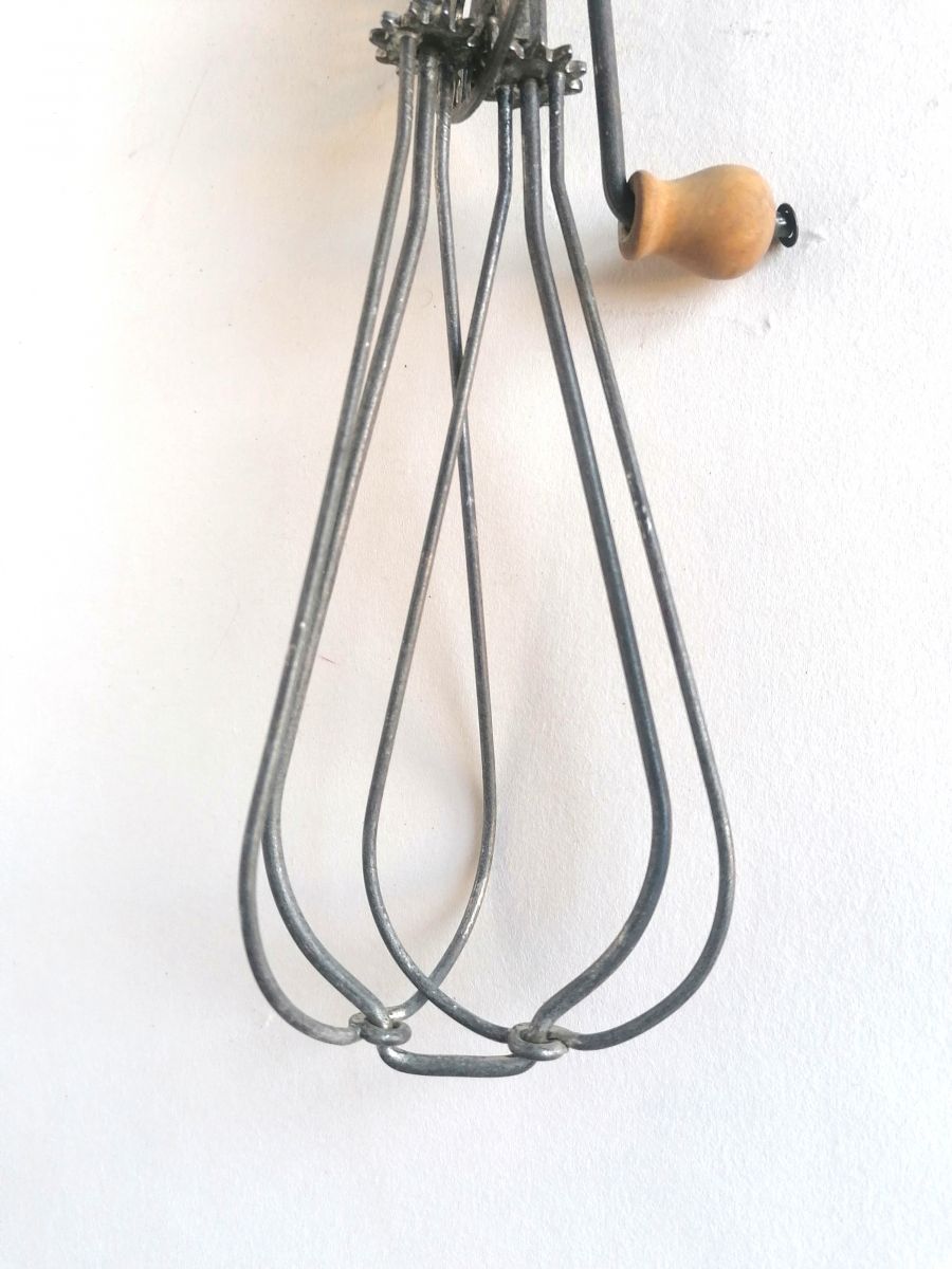 Voici un fouet manuel, des années 50, pour ceux et celles qui aiment décorer leur intérieur avec des objets qui gardent encore la saveur d'autrefois. Fonctionne.