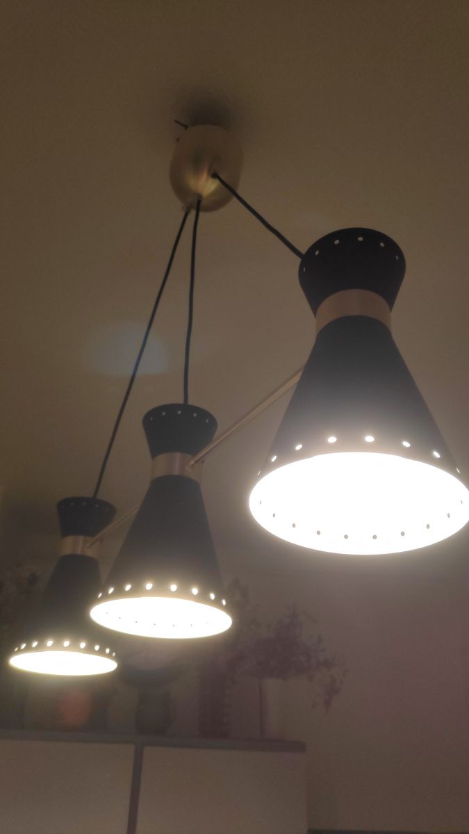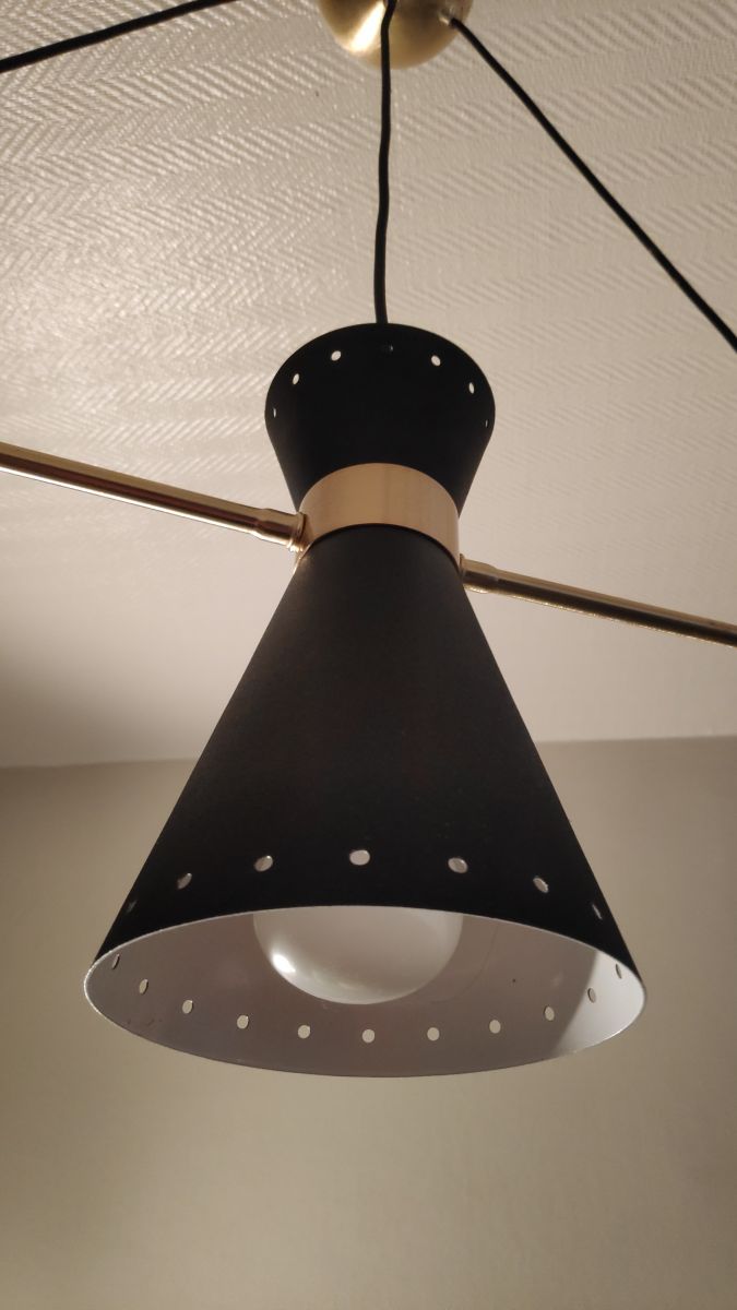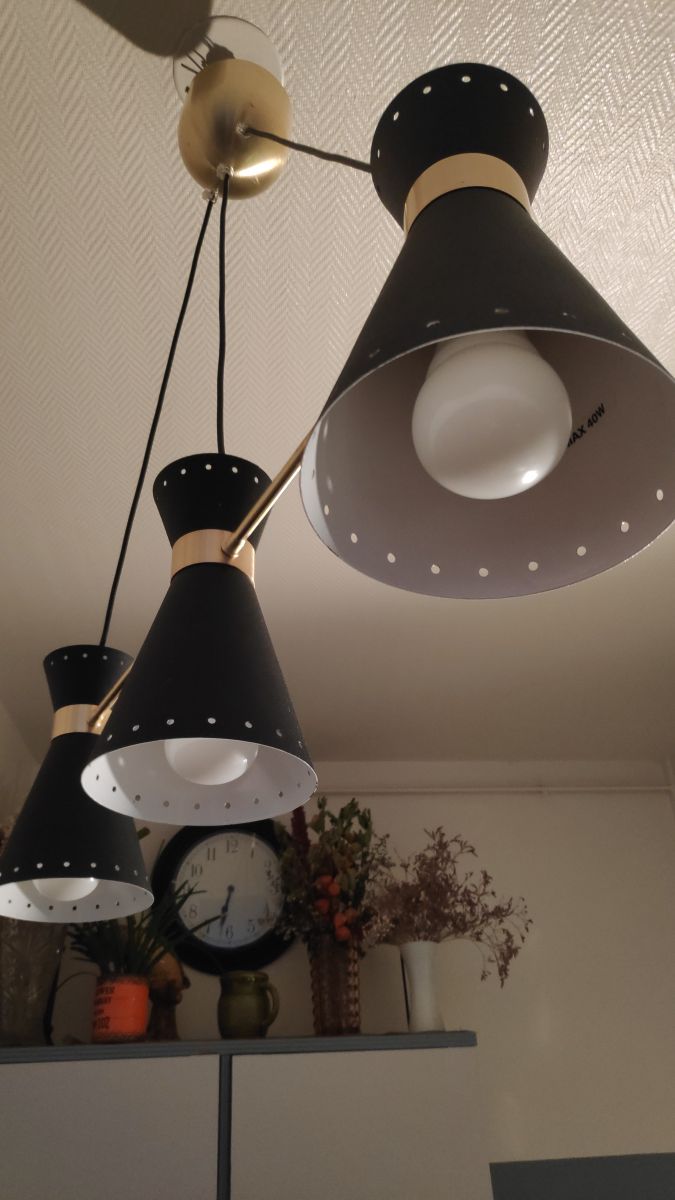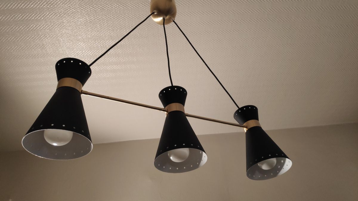 lustre 3 diabolos en métal noir et doré réglage en hauteur