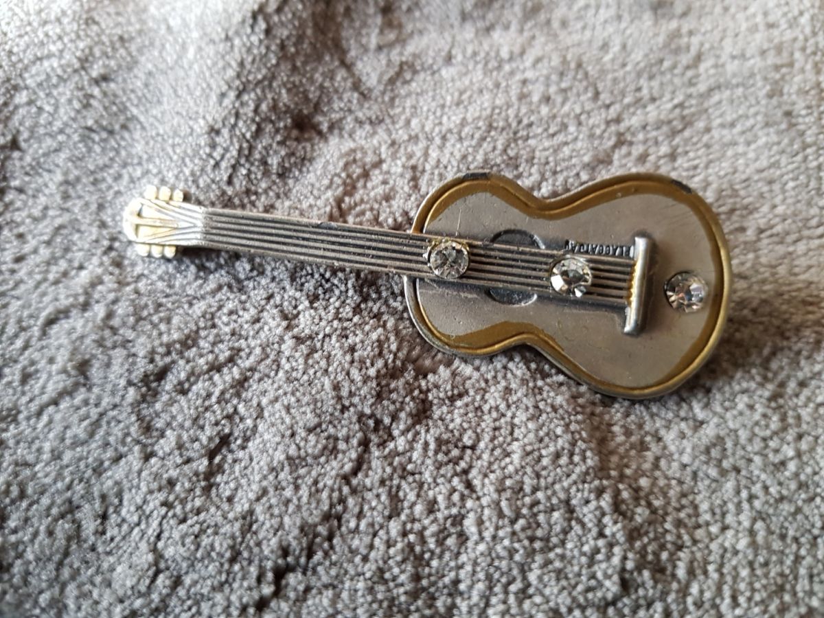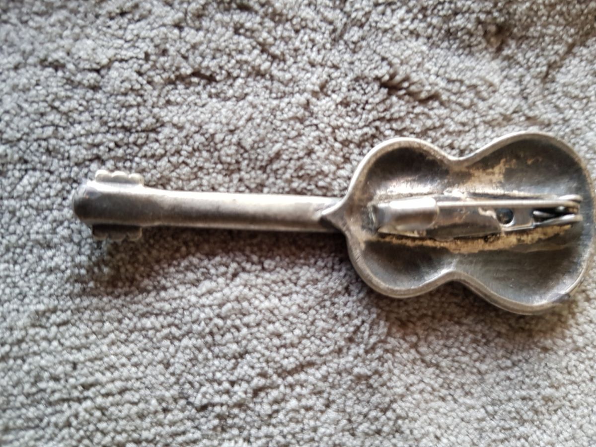 Broche forme violon plaquée argent.