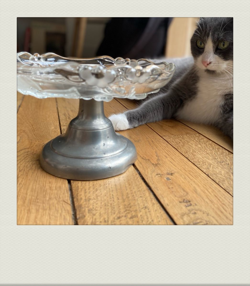 Coupelle vintage sur pied verre et étain.