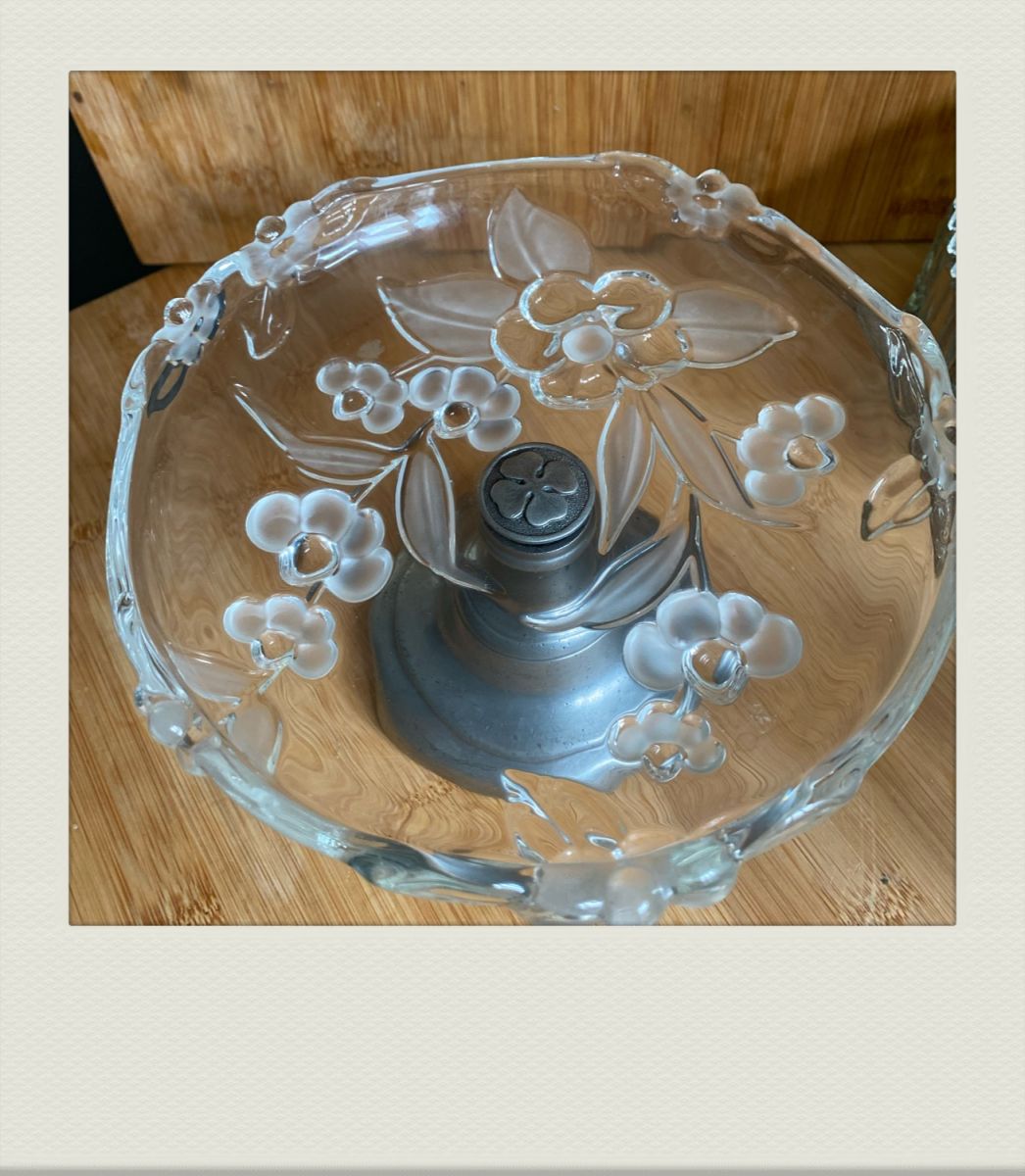 Un trésor...! Coupelle sur pied verre et étain.