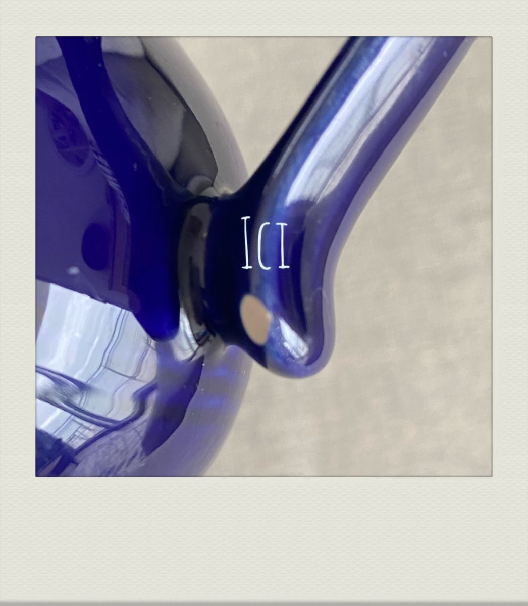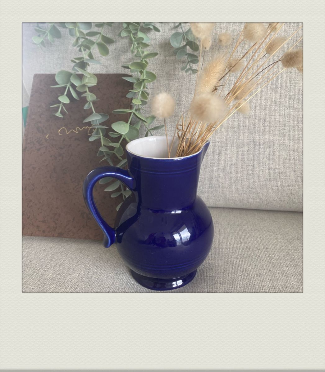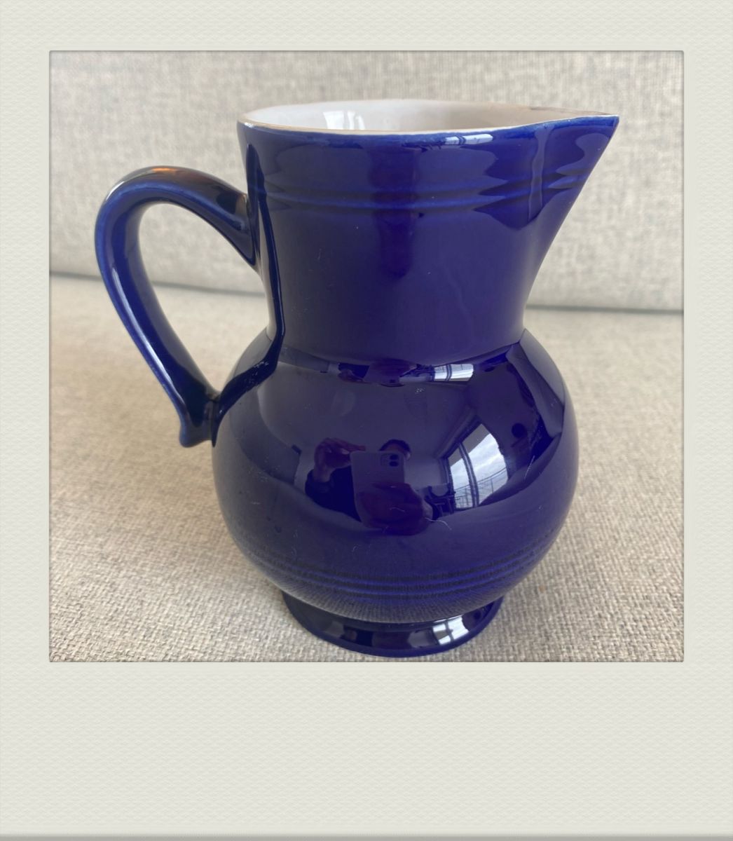 Pichet Émile Henry, bleu azur brillant, très bon état (un seul petit éclat, cf. Photo).