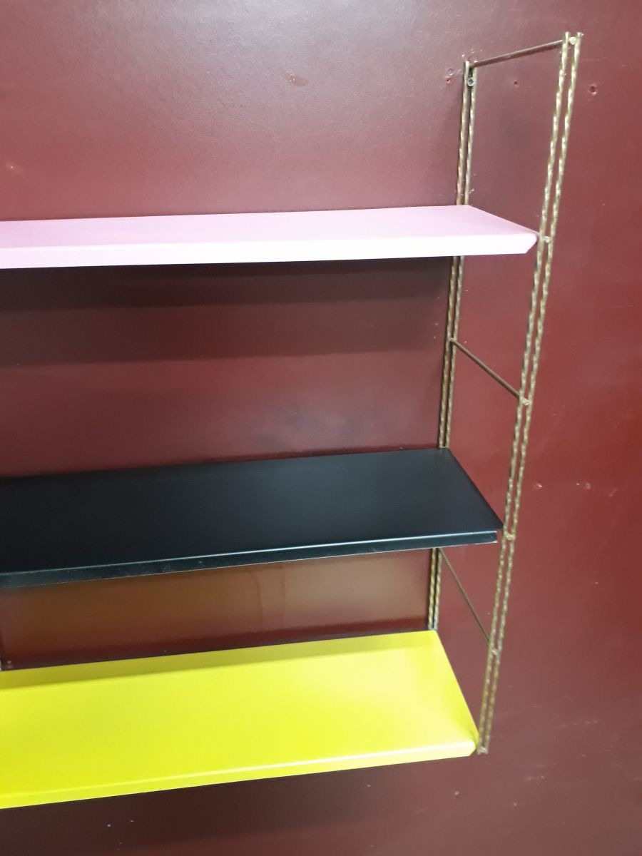 etagere string armature or strié ;plateaux rose ,black,jaune, (tomado) vintage