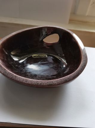 Vide poche Accolay. Coupelle ou petit vide poche brun rehaussé d'une couleur qui donne un côté très contemporain à cet objet vintage des années 60's. Signature en dessous, aucun éclat dans l'émail, diamètre de 14 cm