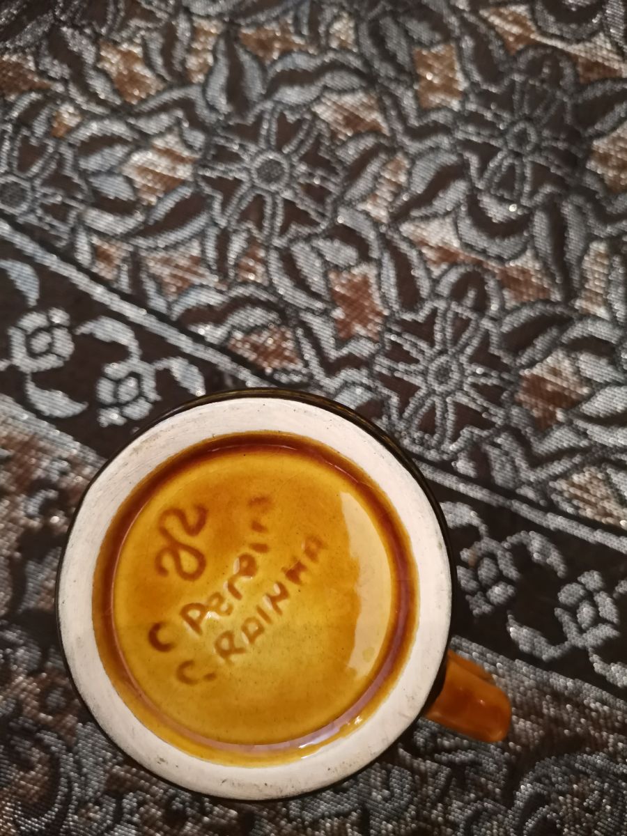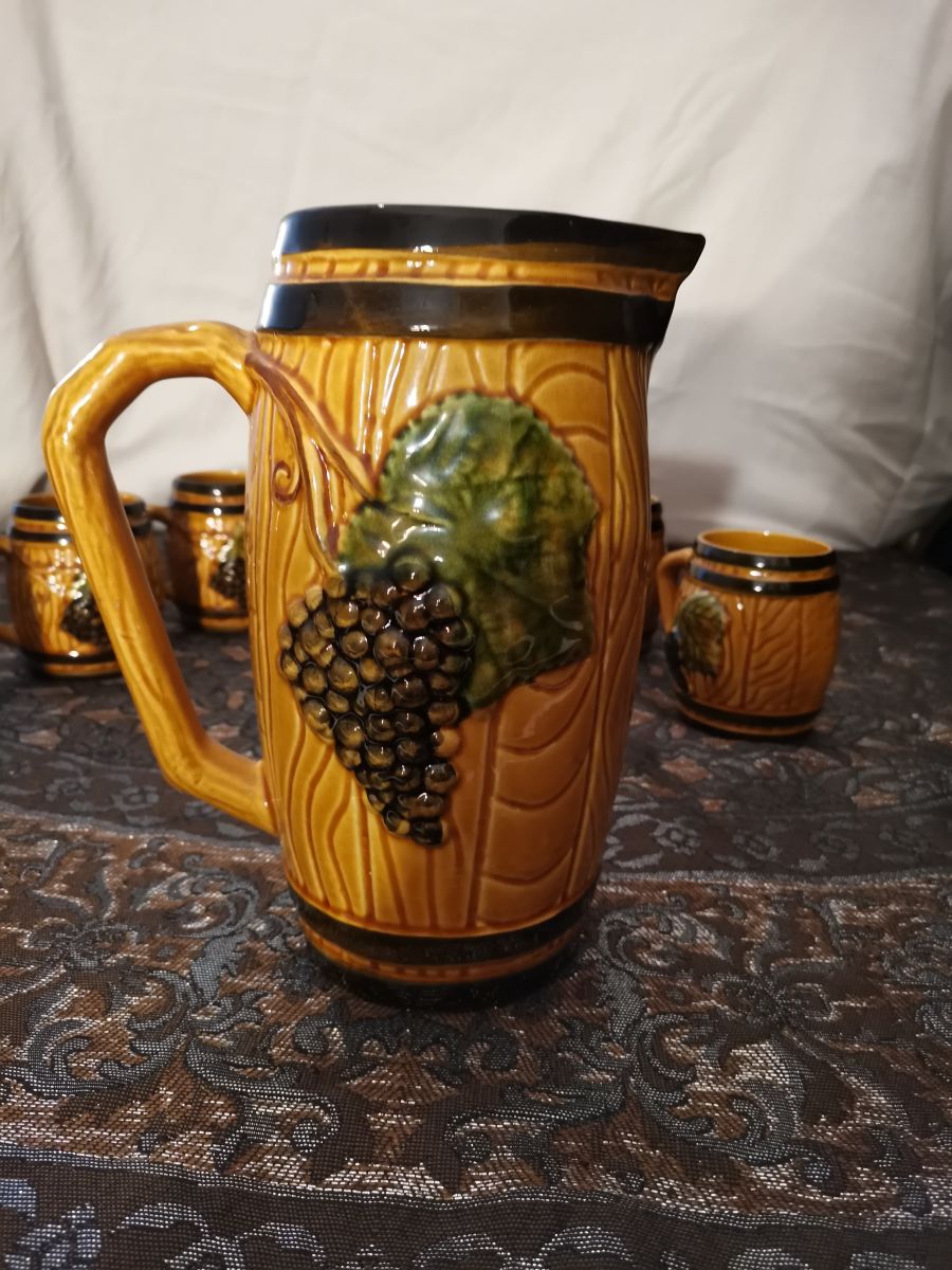 pichet au décor raisins avec feuille . signe C Pereira avec l' inscription made in Portugal . Pichet hauteur 23 cm, mug 10 cm . toutes les pièces état impeccable
