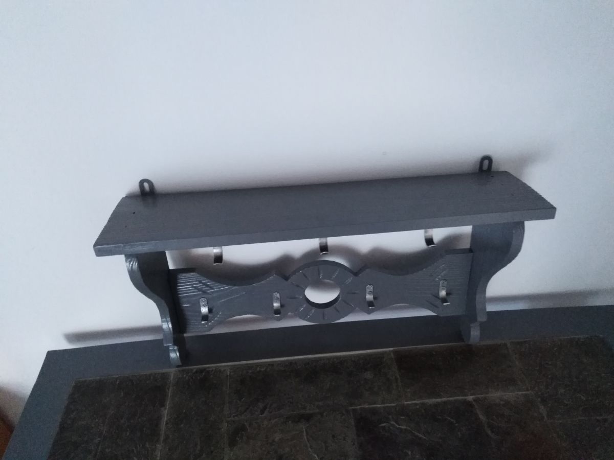 Porte-manteaux mural en bois sculpté Vintage avec plusieurs crochets en aluminium . Repeint récemment , neuf .