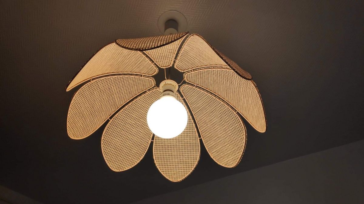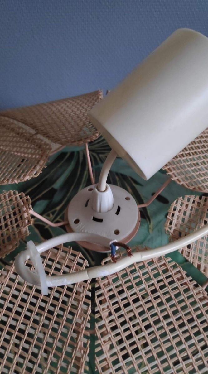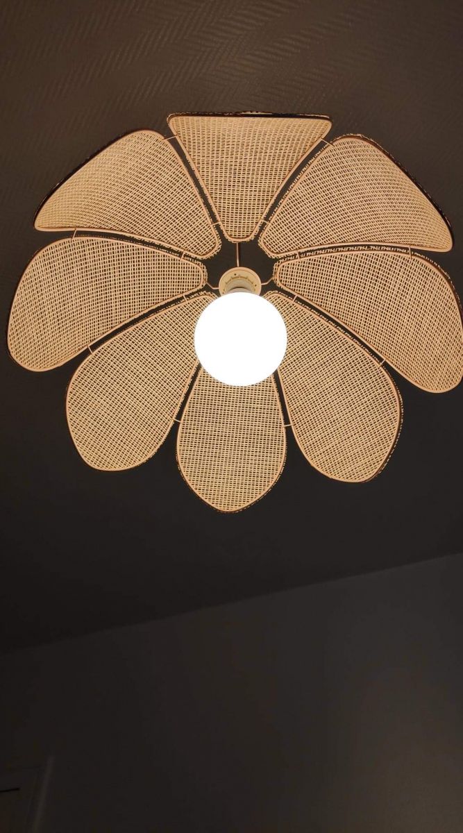 suspension fleur de lotus cannée vieux rose sur armature en métal