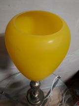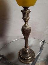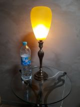 tres grande lampe bronze abat jour verre jaune opaque