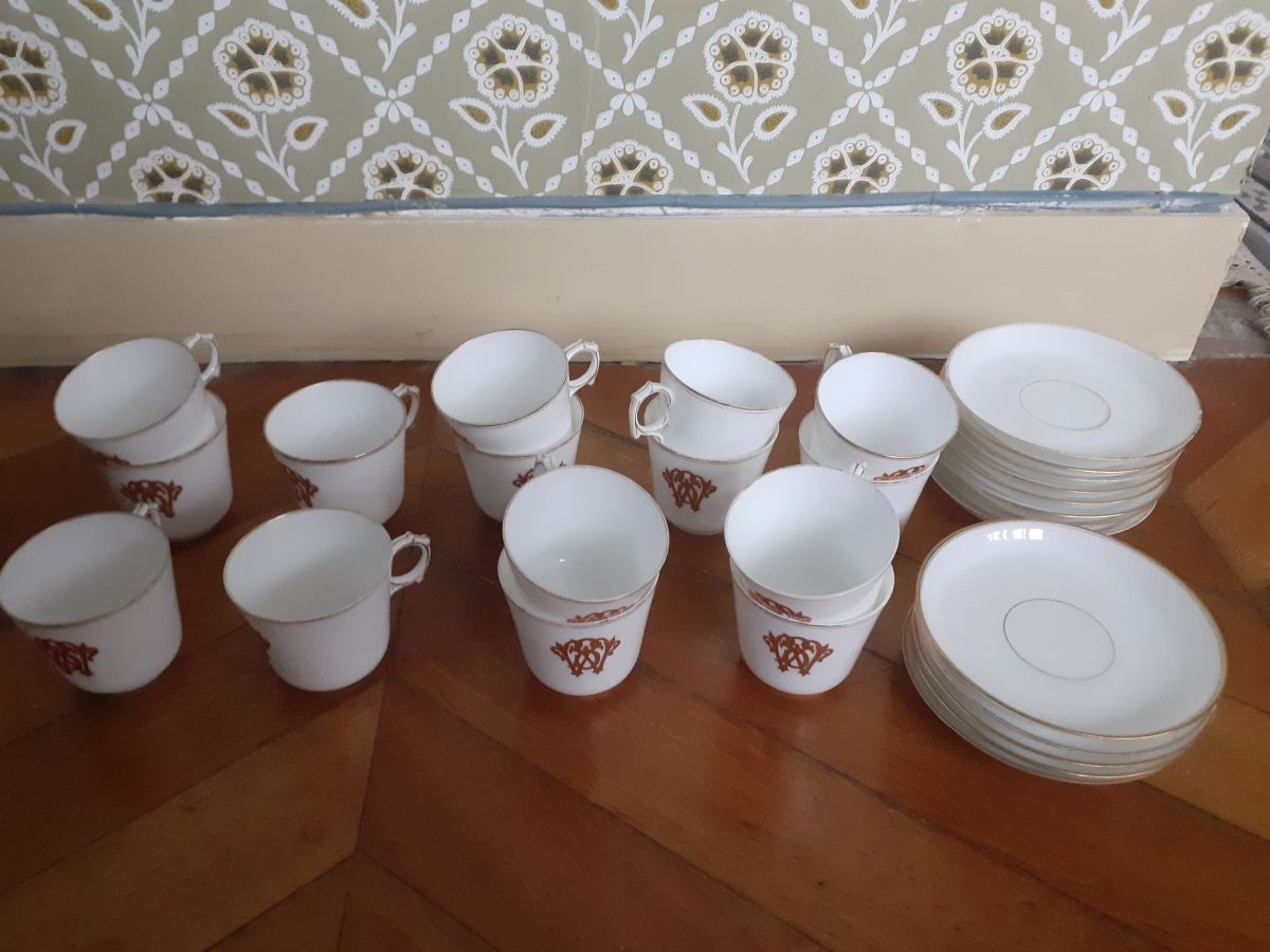 Le service comprend 1 sucrier, 1 pichet à lait, 15 tasses et 13 soucoupes.