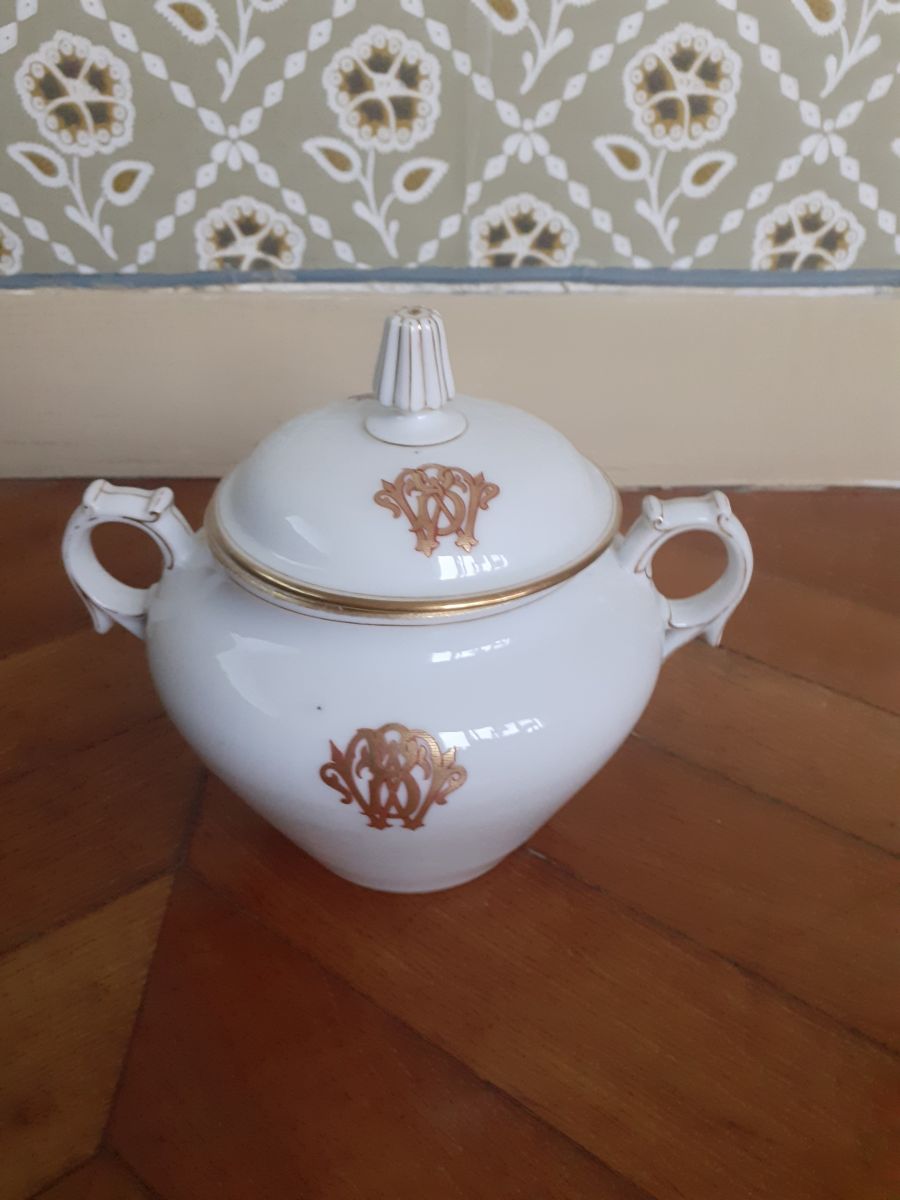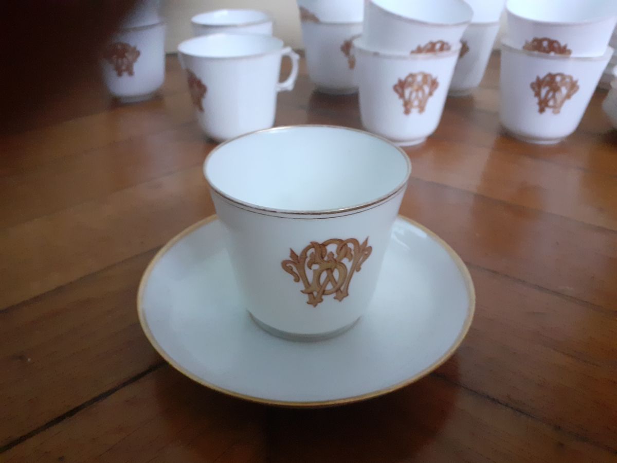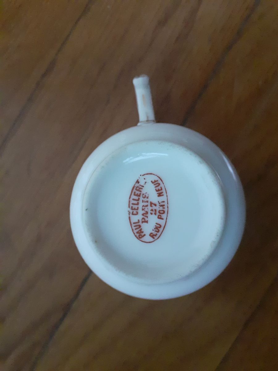 Service en porcelaine vieux Paris de la fin du XIX ième siècle signé Paul Célerin. Les pièces ont un décor délicat doré avec un liseret sur les anses et les bords.