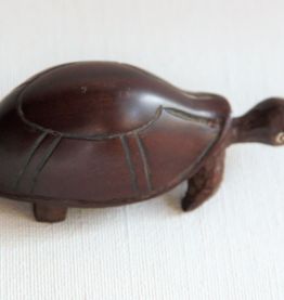 Adorable petite tortue en bois foncé. Vintage.