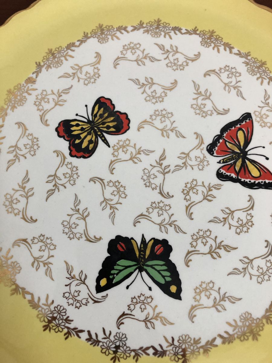 Plat à tarte ou a gâteau en céramique Orchies Moulins des Loups au décor papillons