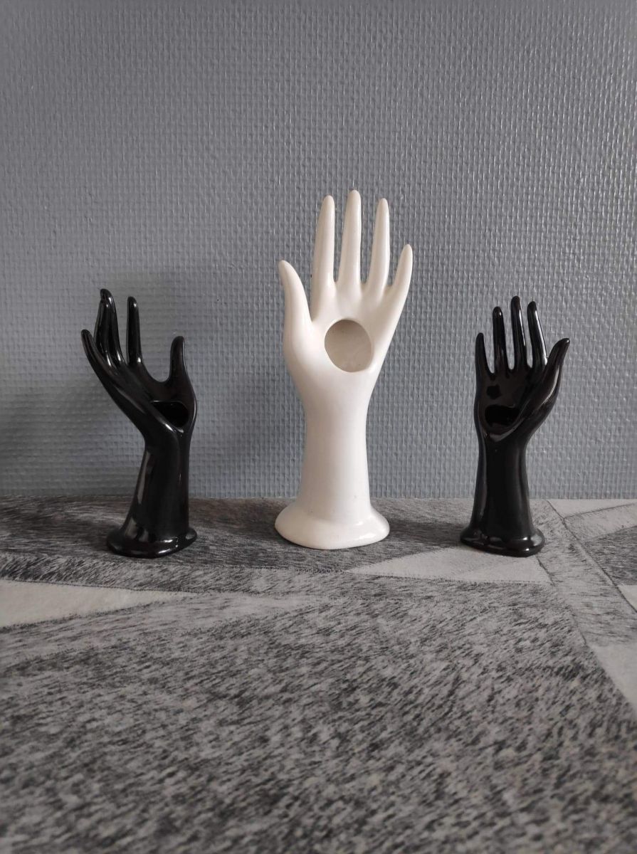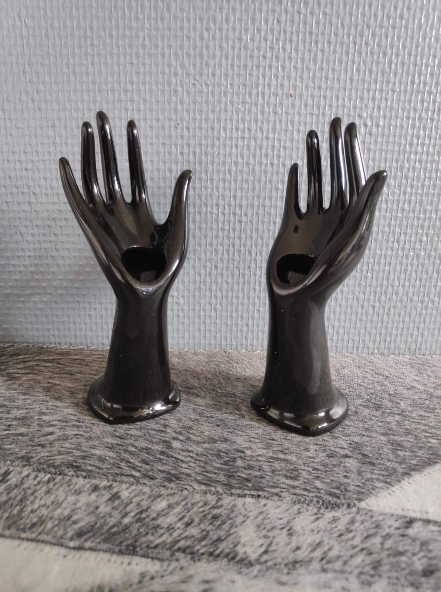 2 petits soliflores mains en céramique noires