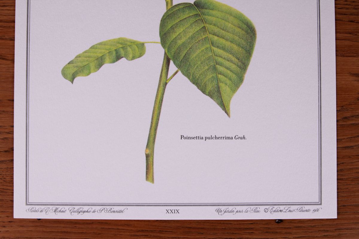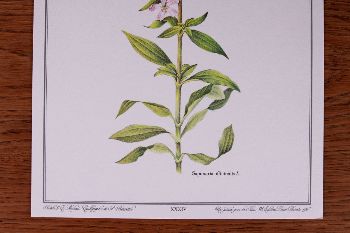 illustration reproduction qui donne l effet du pastel. Papier épais a joli grain, cartonné. Dessin du végétal en couleur, nom latin.