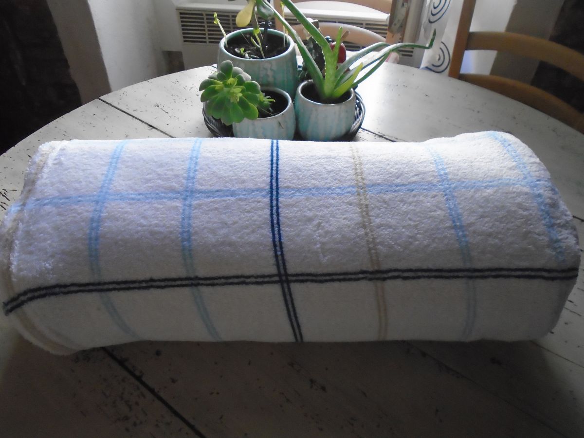 Plaid chaud et doux en polaire fond blanc et carreaux pastel
