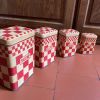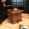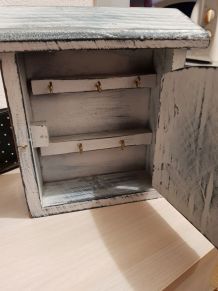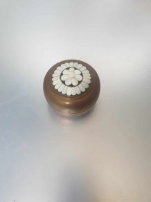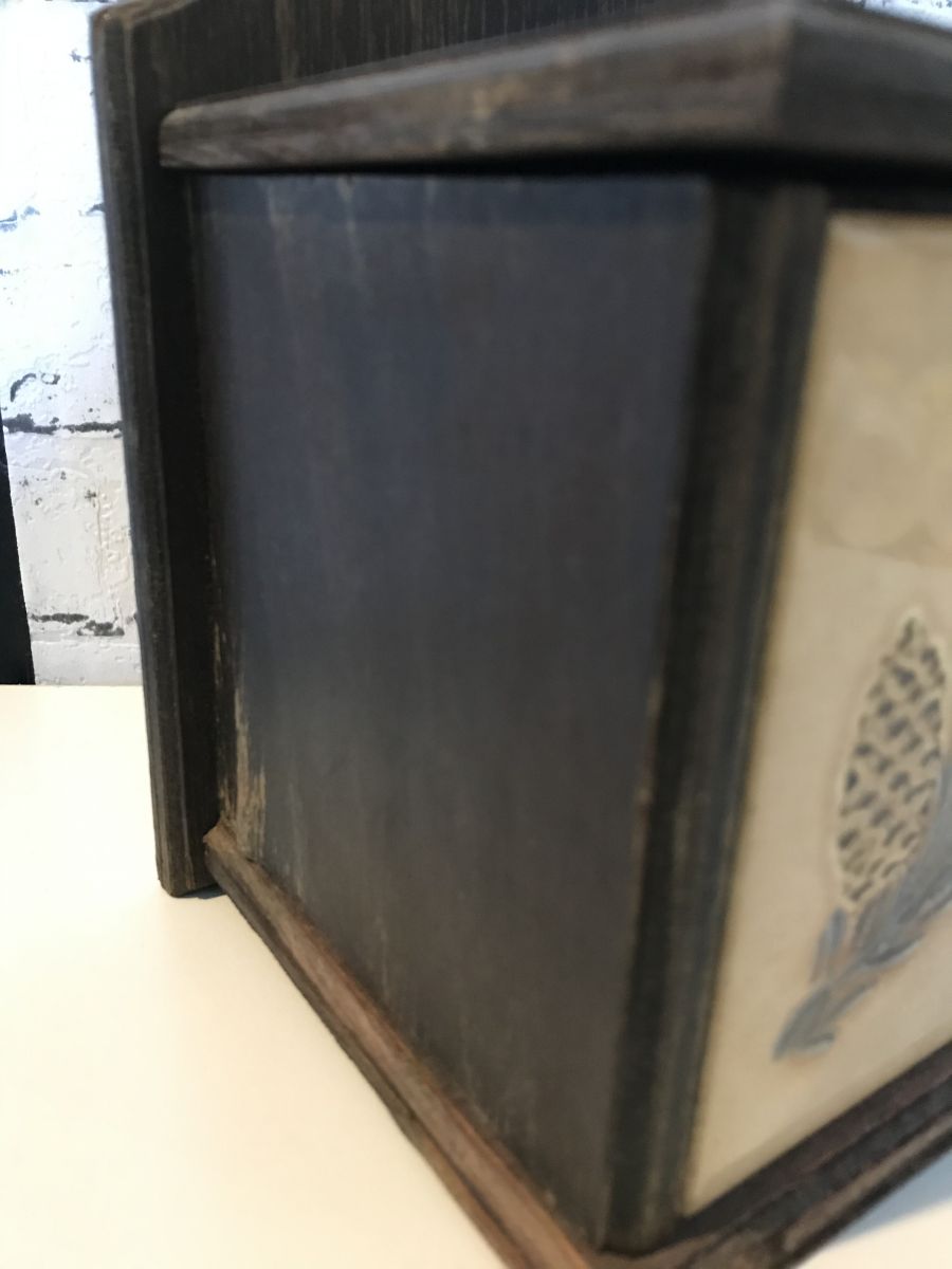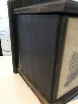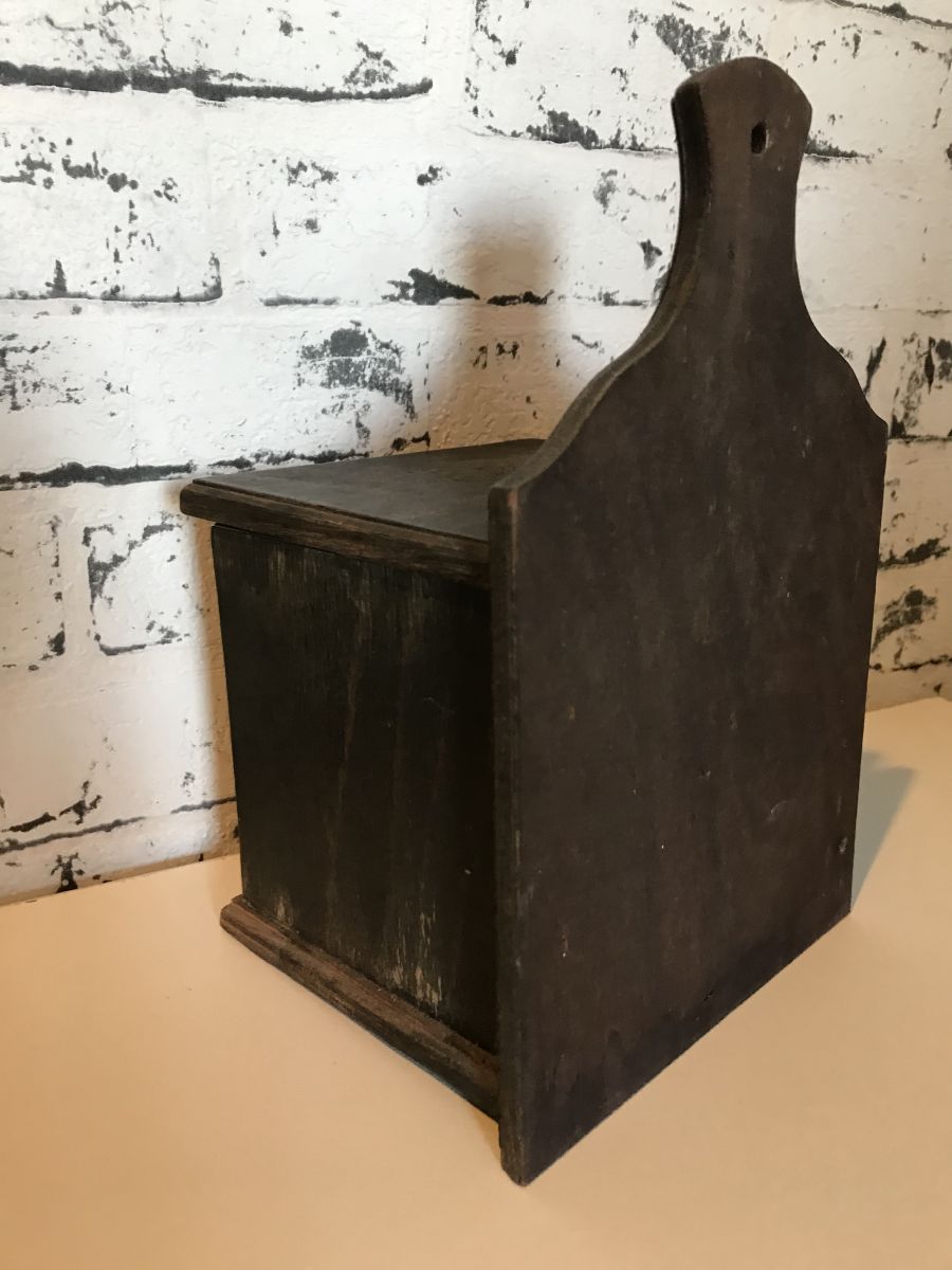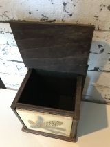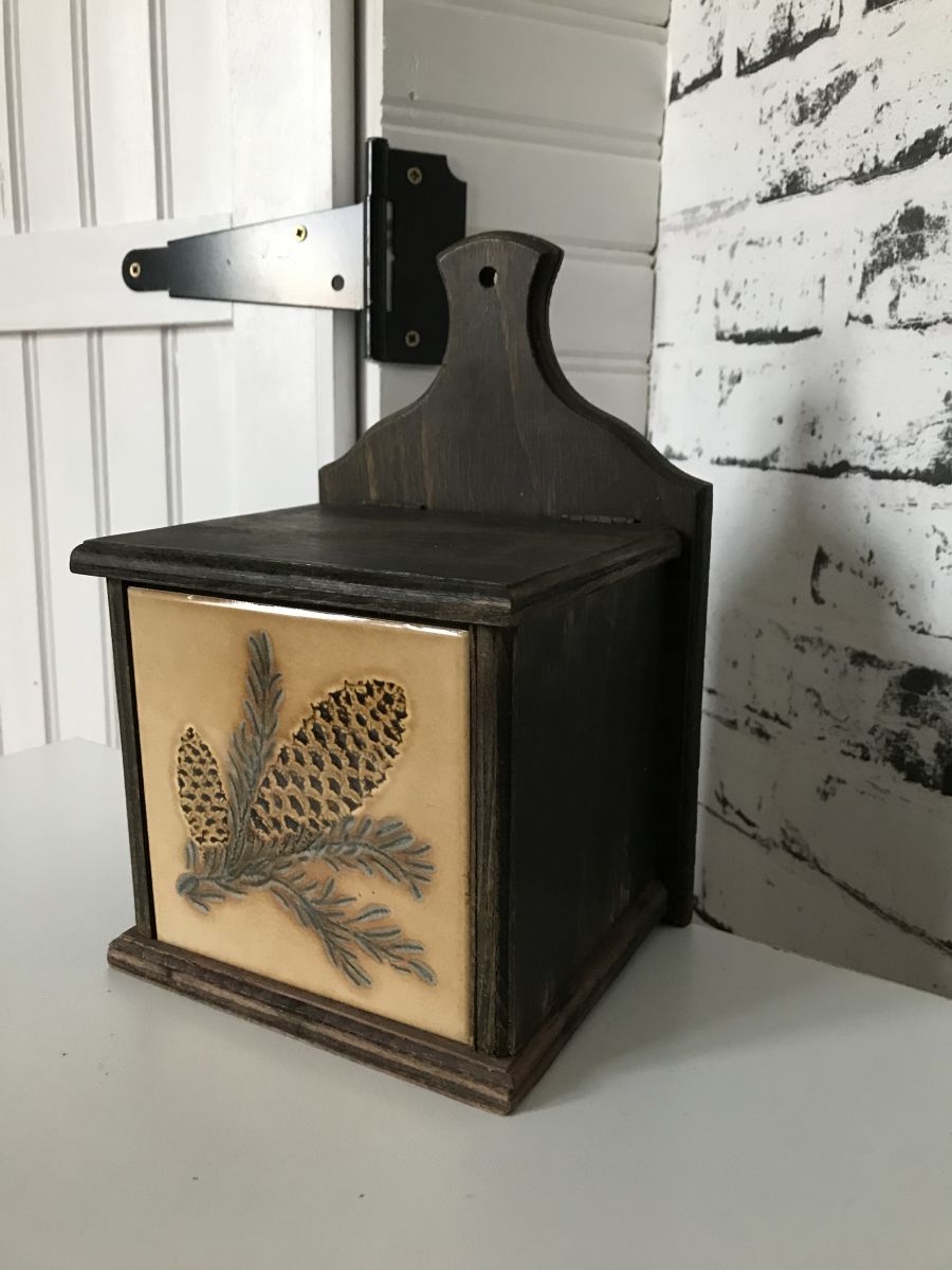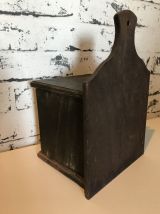 Boite à sel ancienne en bois avec 1 carreau de faïence retro en façade.
