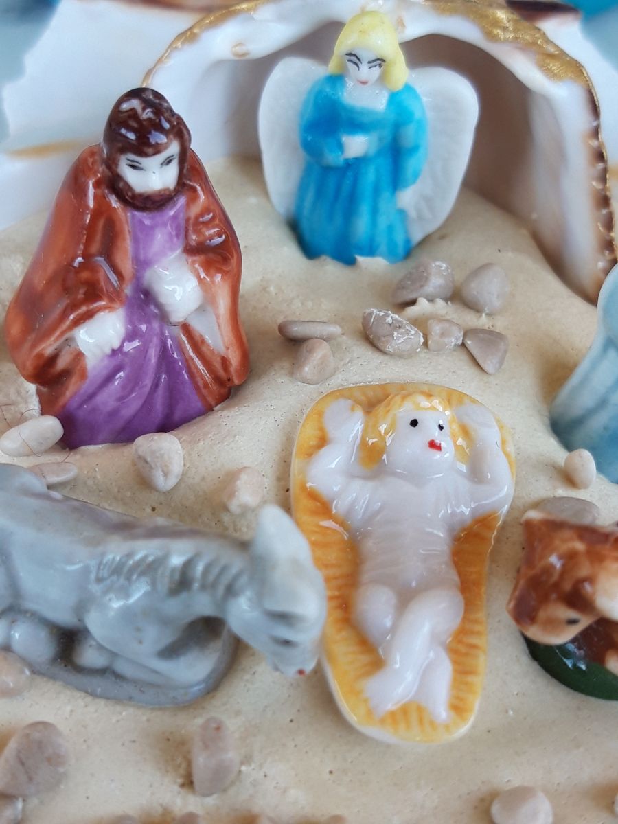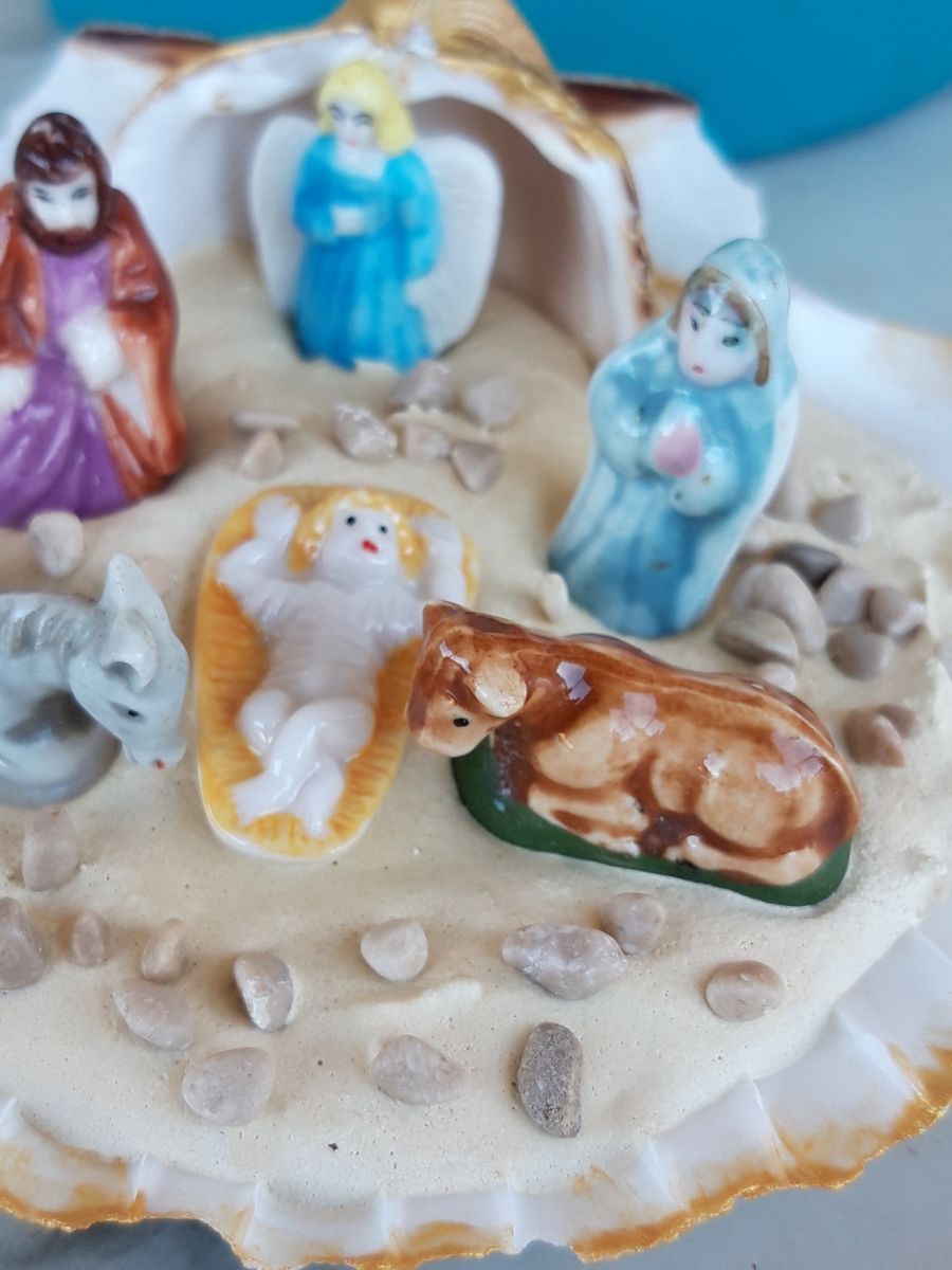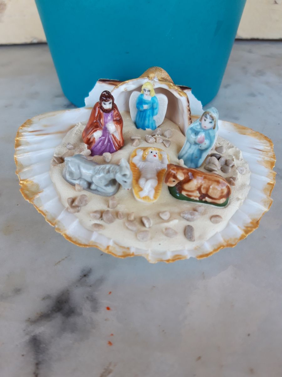 Une superbe petite crèche dans une véritable coquille de St Jacques.