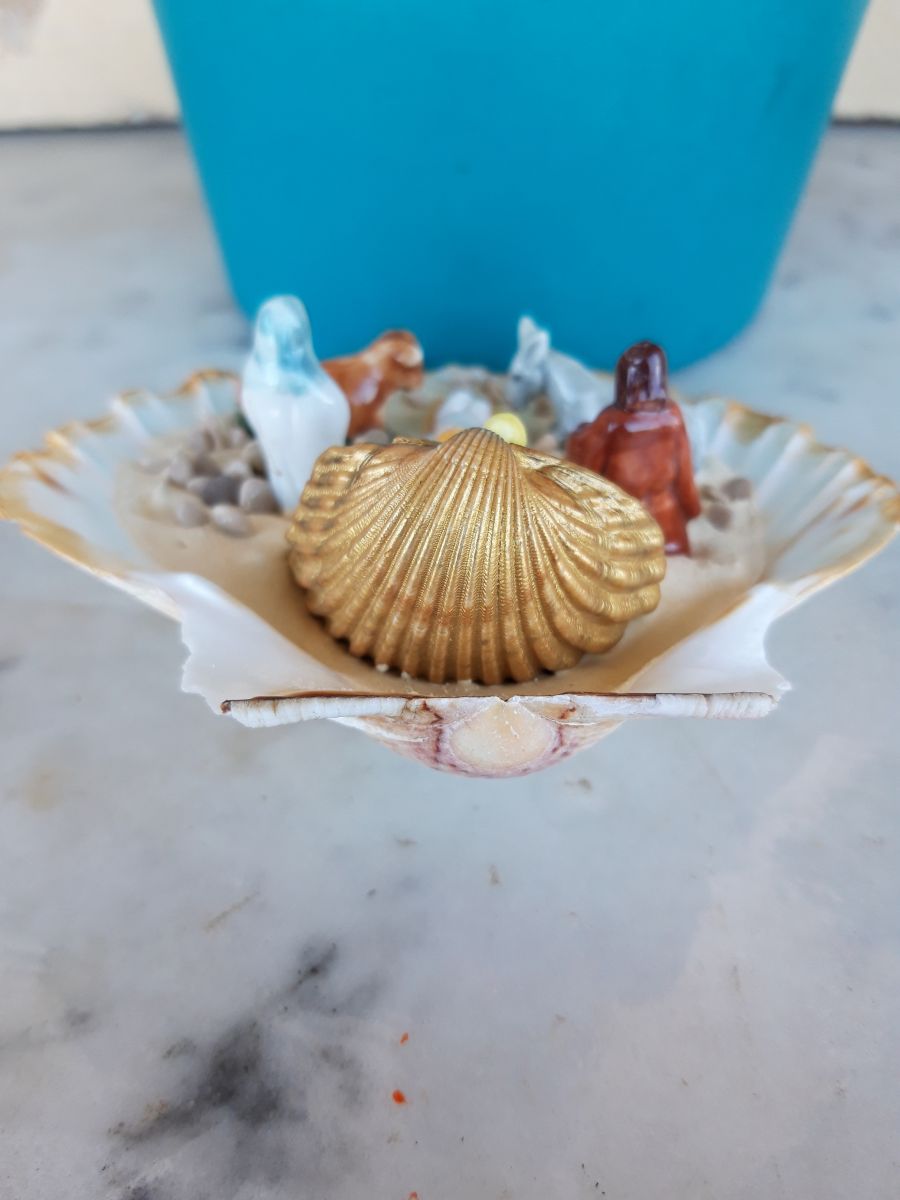 Crèche dans véritable coquille de St Jacques NEUVE