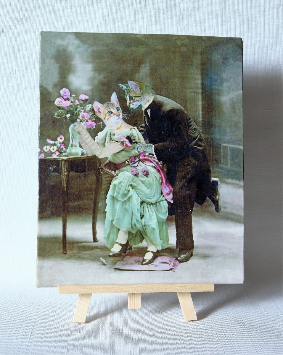 Décoration murale chat années 1900, carte postale retro chats, carte postale amoureux 1900, décoration murale chats amoureux, cadeaux St Valentin. petit tableau chat à accrocher ou à poser sur chevalet.