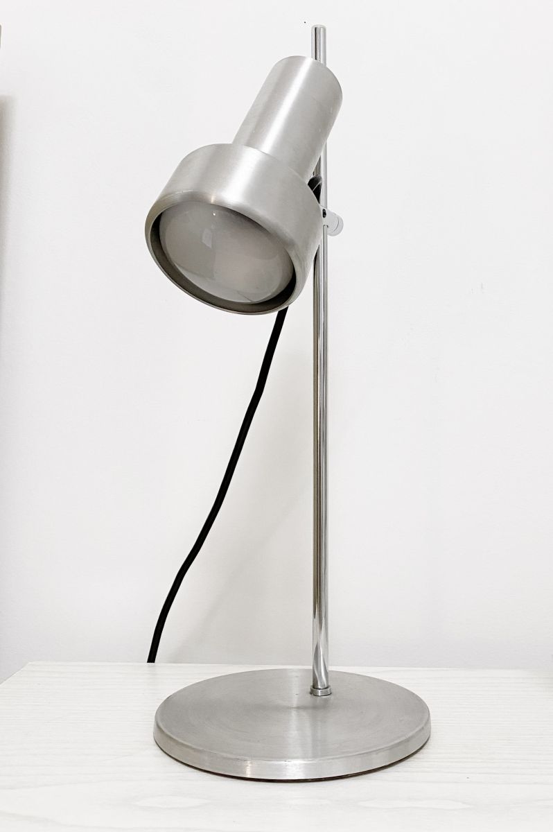 Lampe spot orientable mobile métal chromé style Alain Richard années 70 vintage design en bon état. Pied lourd pour bonne stabilité. H47 x L16 x P17