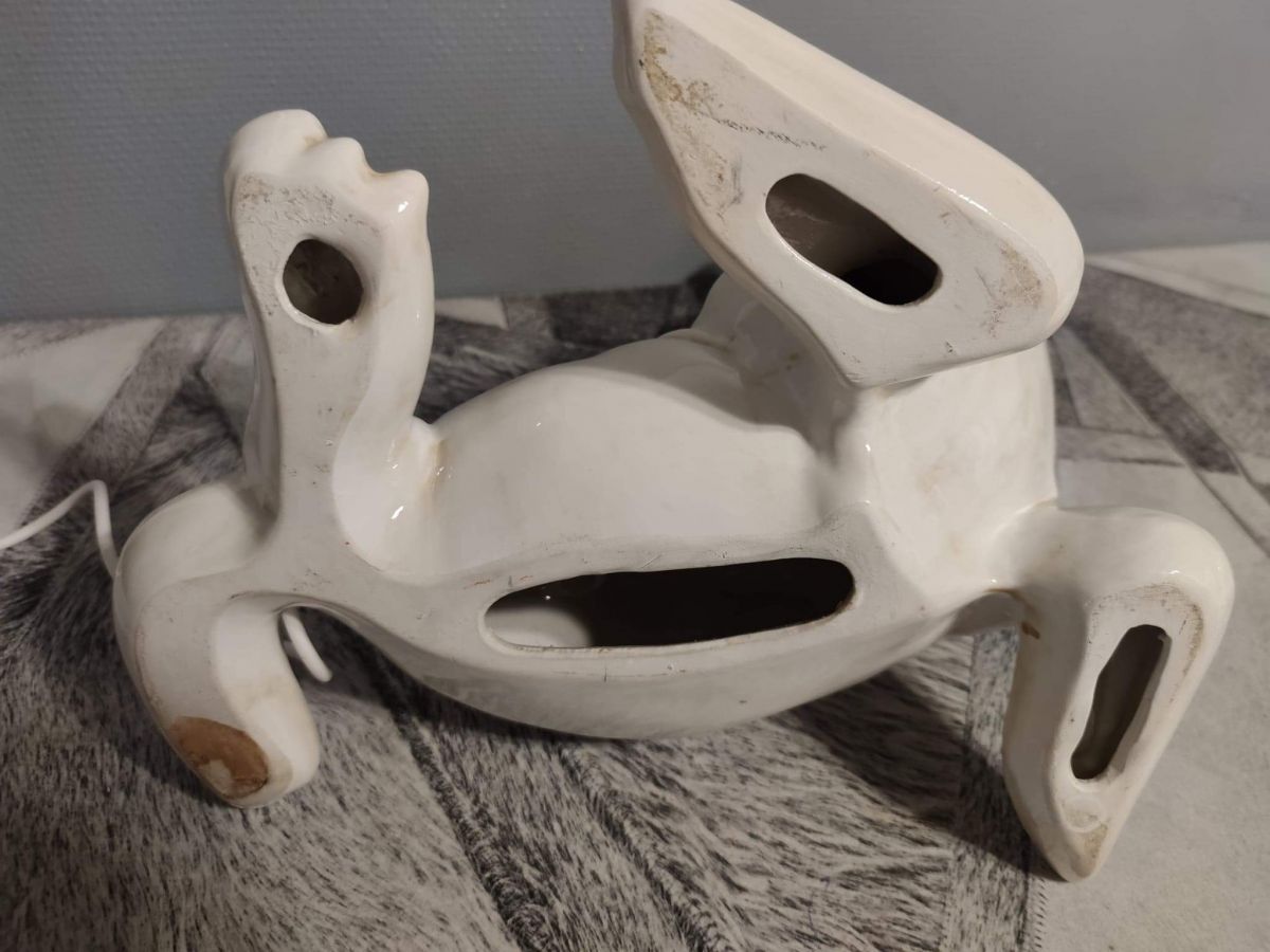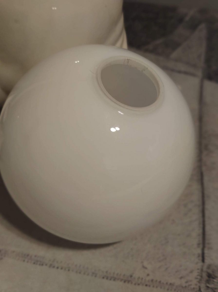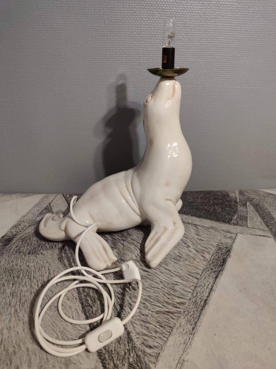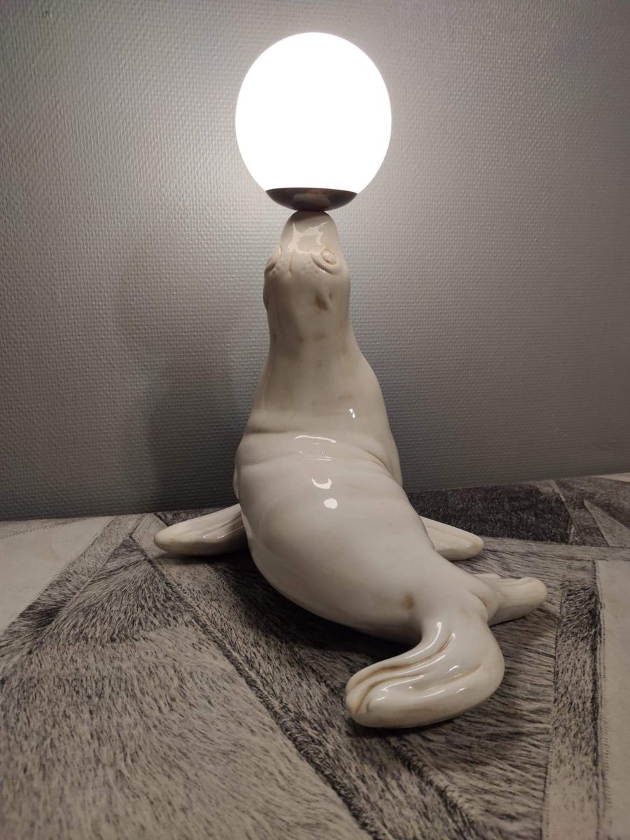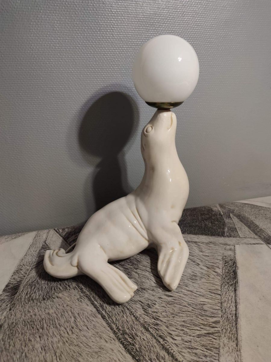 lampe otarie en céramique et globe en opaline blanches des années 80