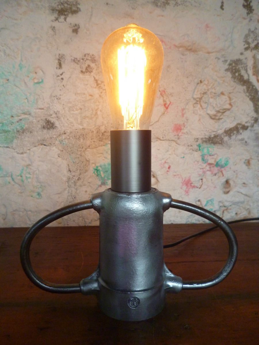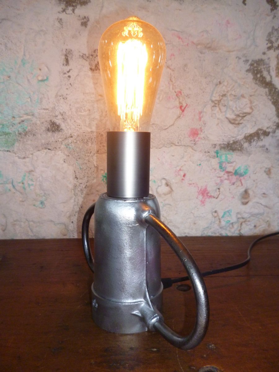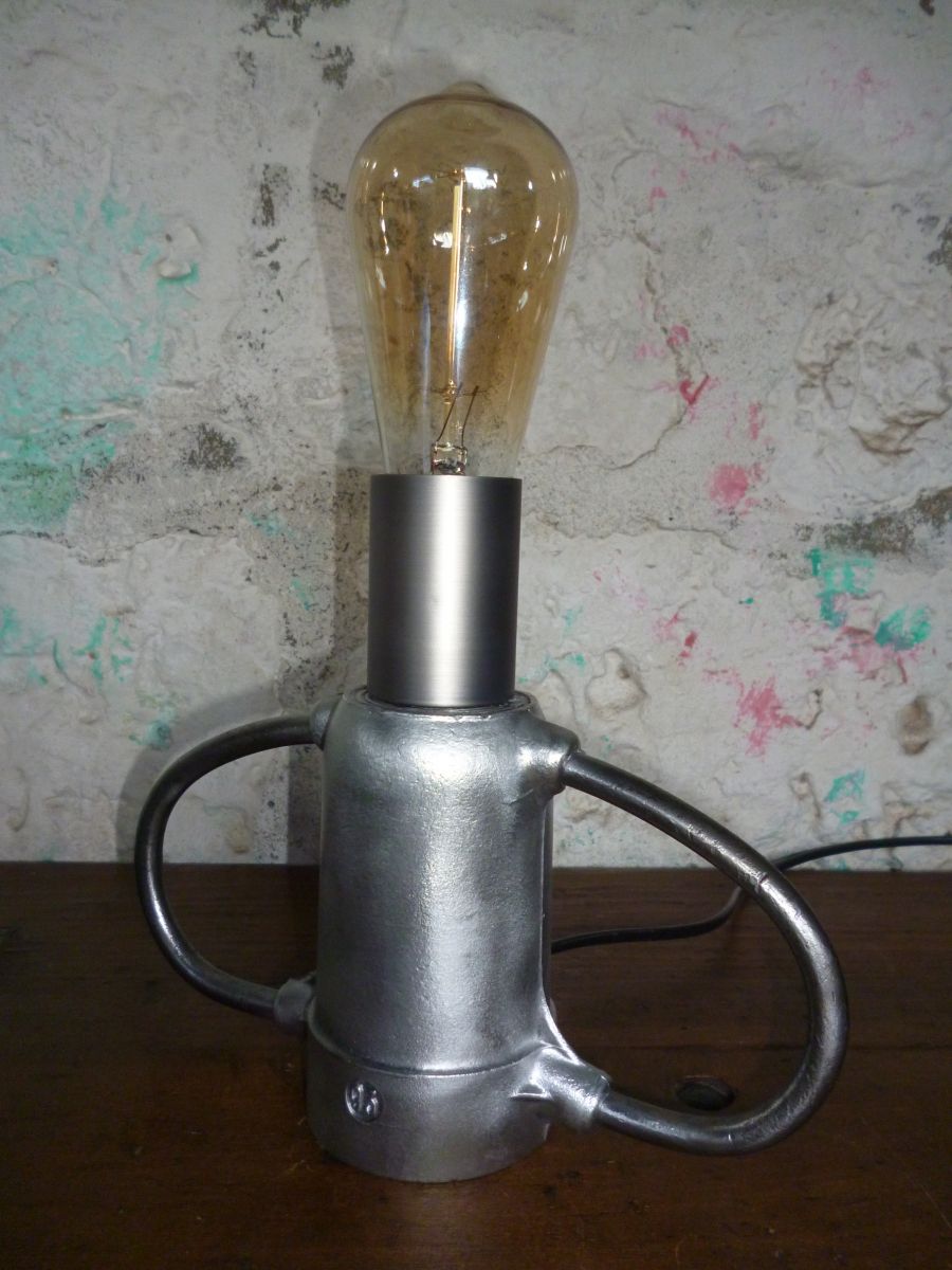 Lampe d'ambiance realisee avec un bouchon a oreilles en aluminium d'une bonbonne de gaz " PRIMAGAZ " .
