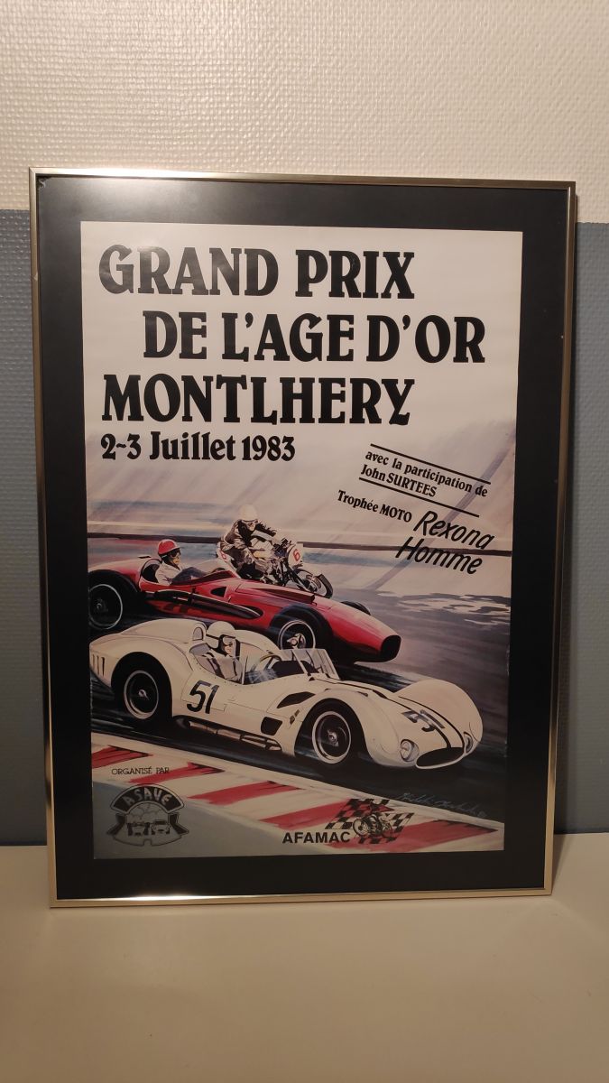 affiche "grand prix de l'âge d'or Montlhéry 1983" encadrée sous verre