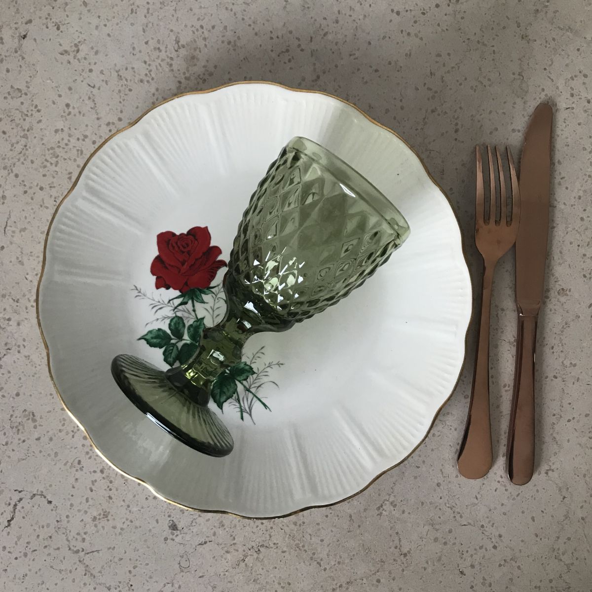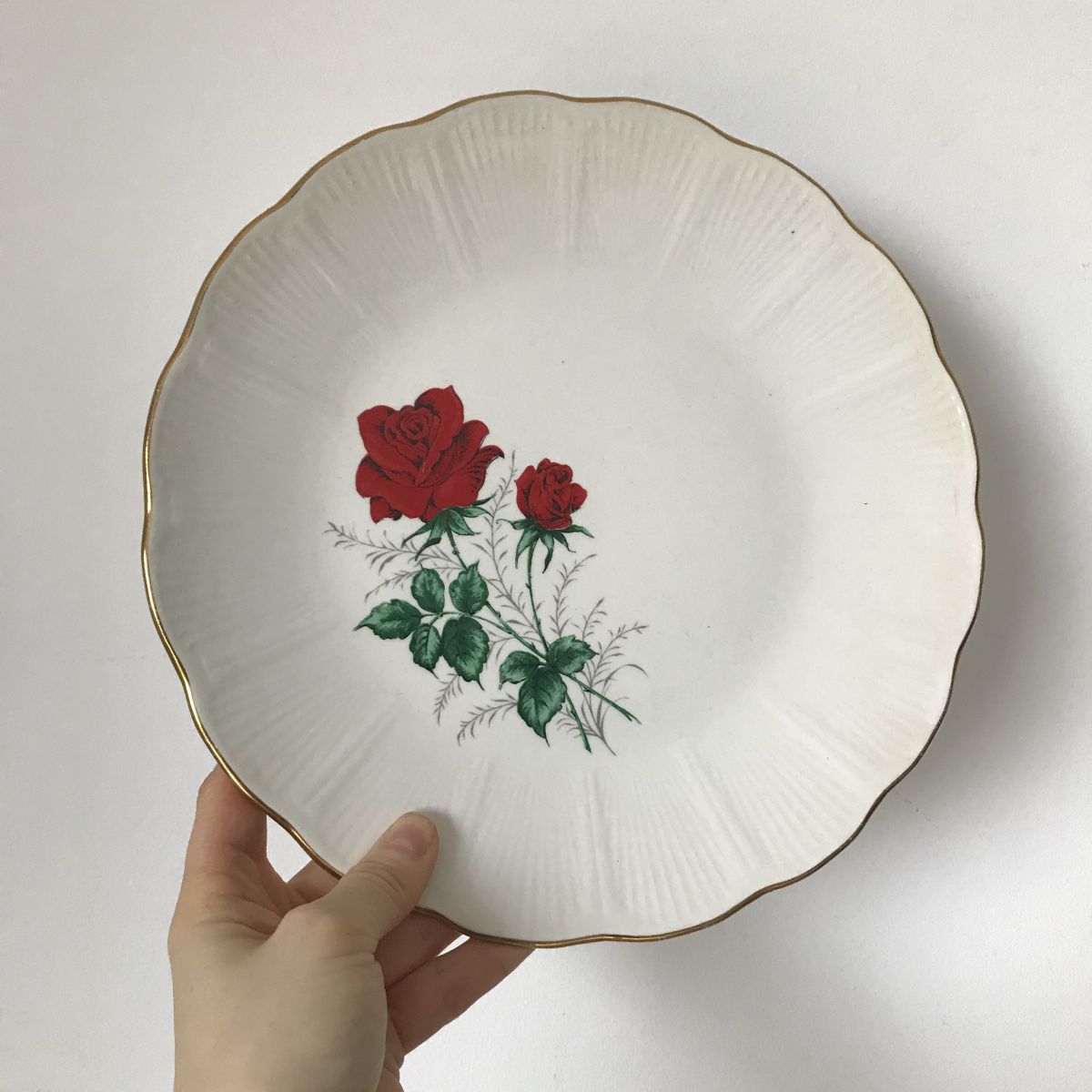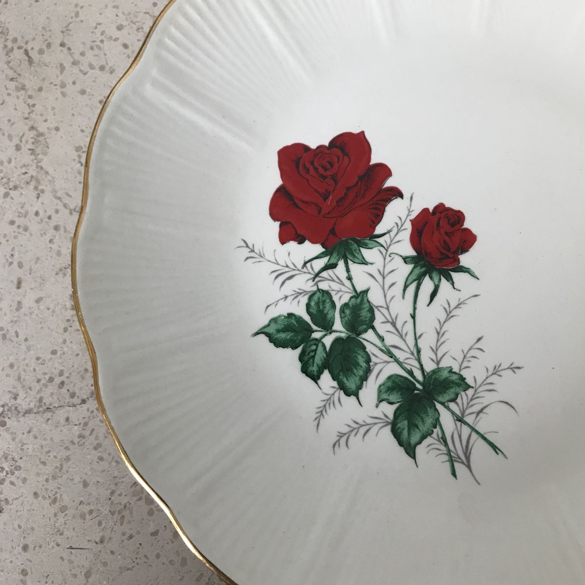 Motif : rose rouge et dorure – forme coquille.