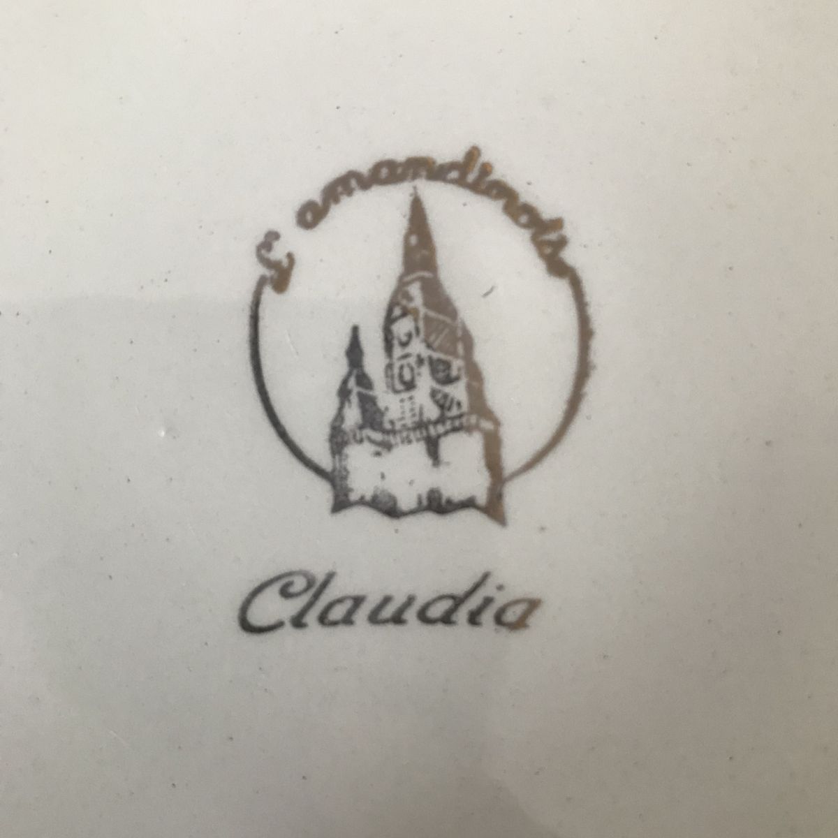 Assiettes estampillées « l’Amandinoise « , « modèle Claudia ».
