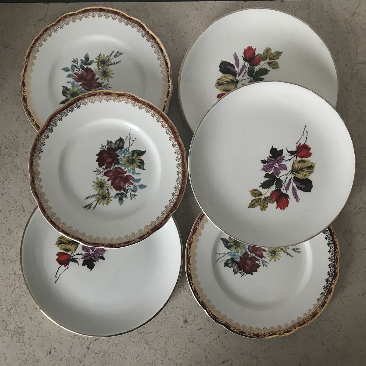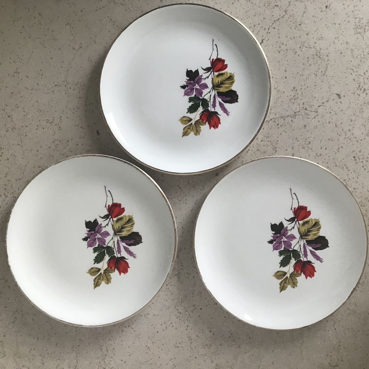 -3 Assiettes estampillées Luneville. ( excellence du savoir-faire français, faiencerie de Luneville +3 assiettes sans estampille.