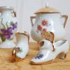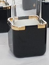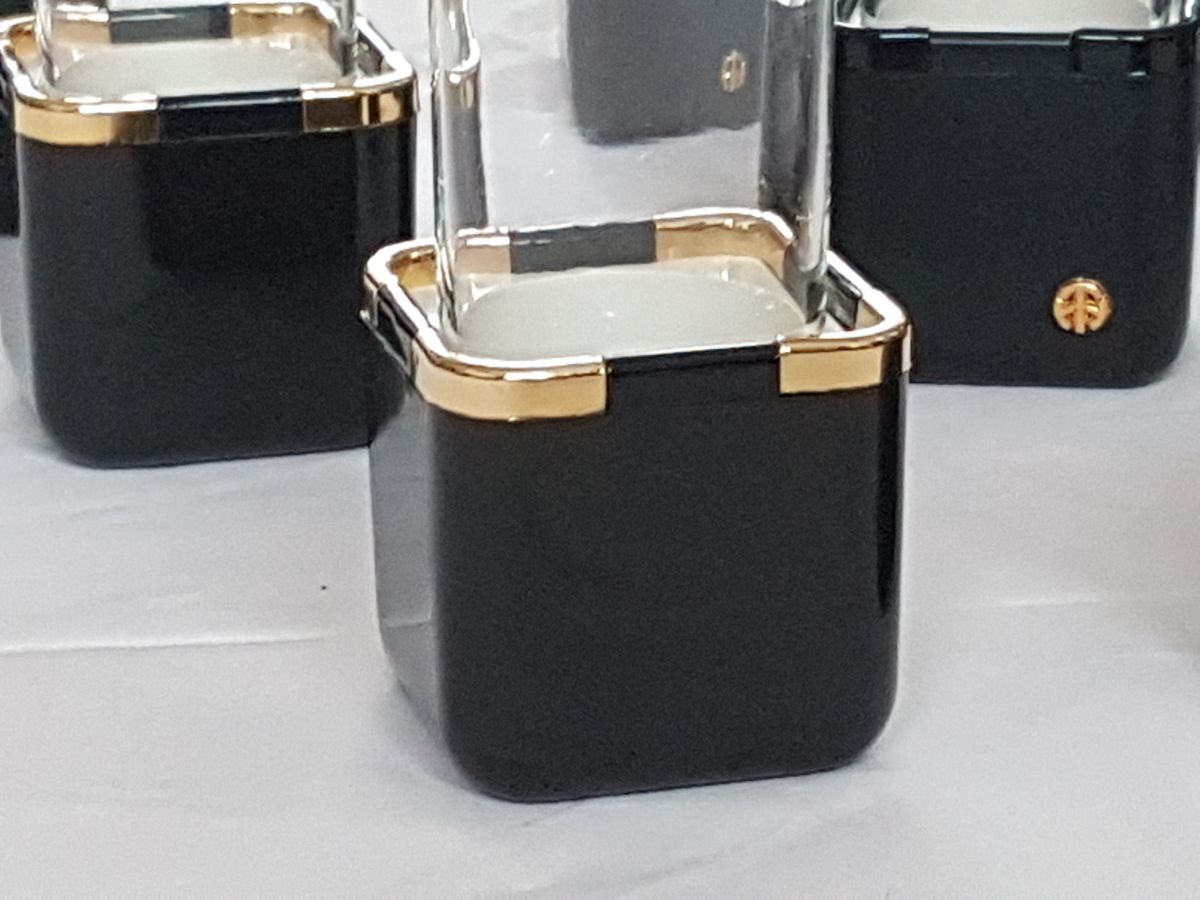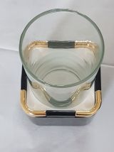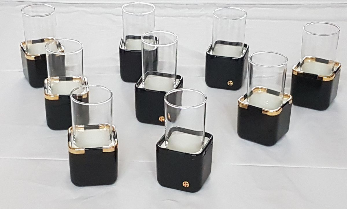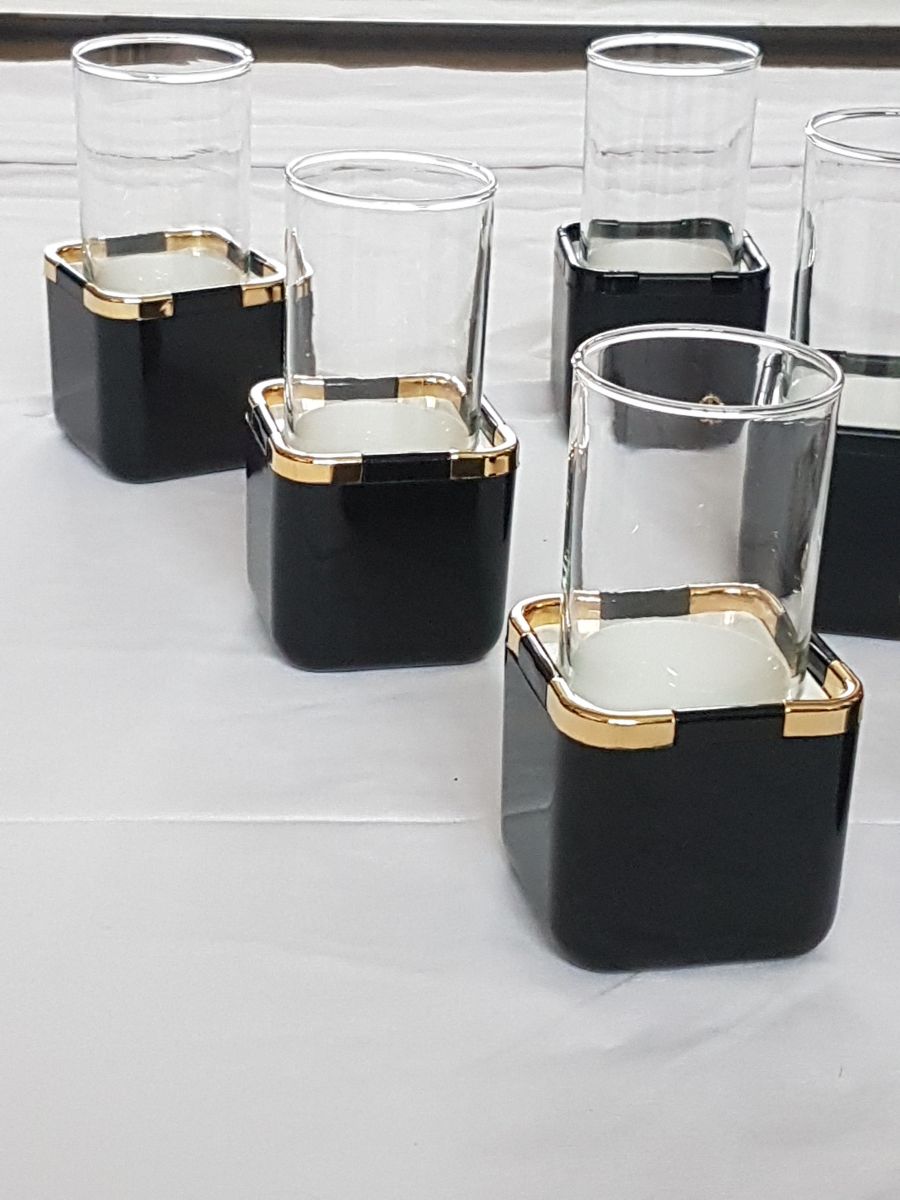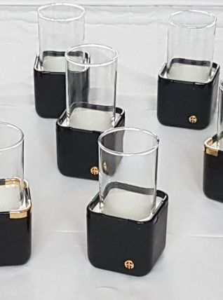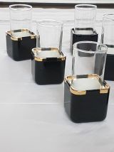- 5 verres et sous-verres, coloris laqué noir et doré avec finition brillante