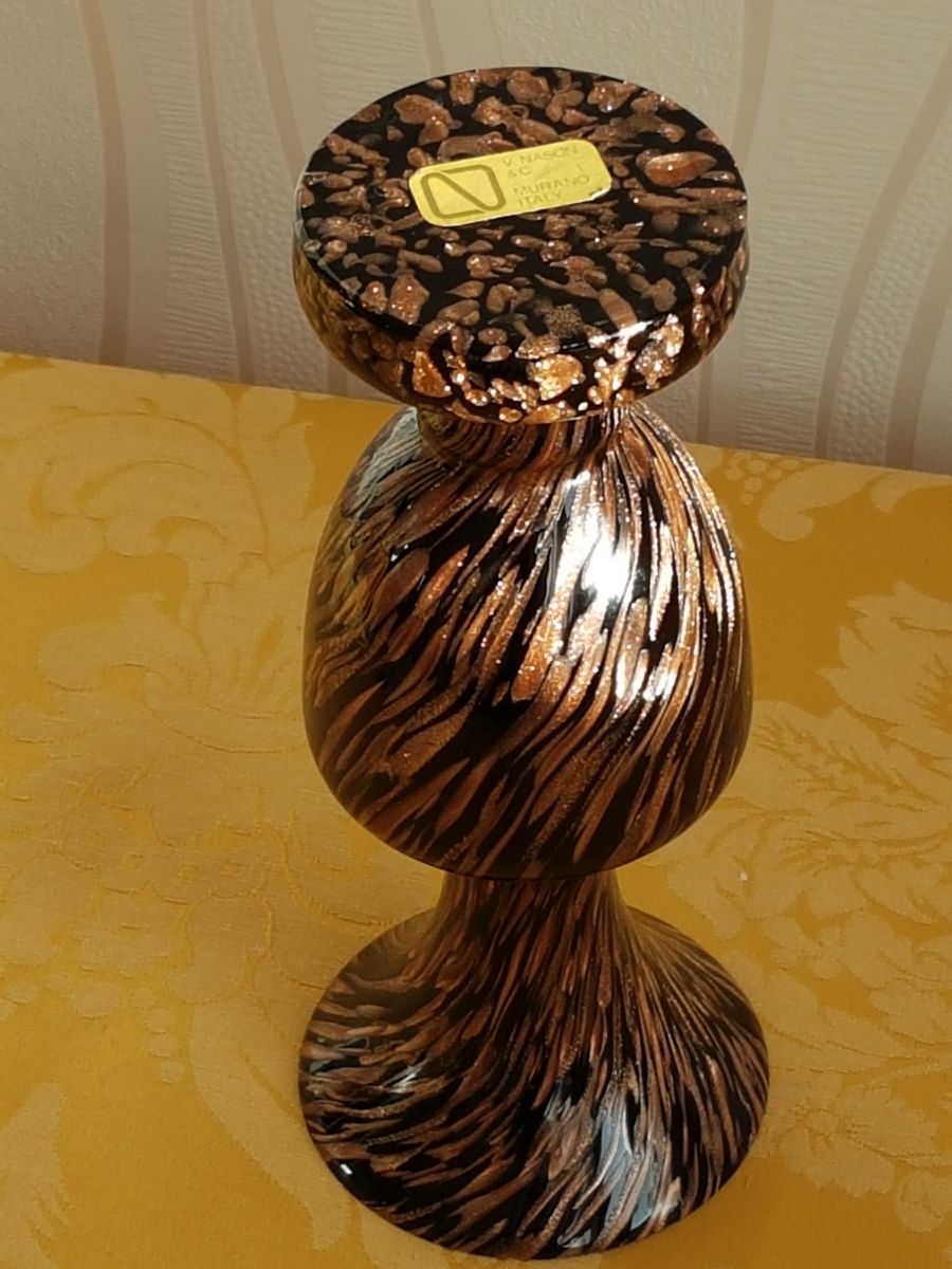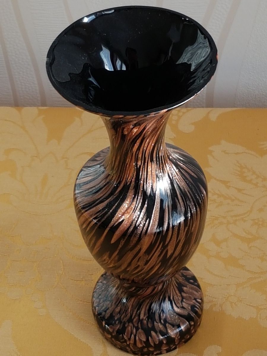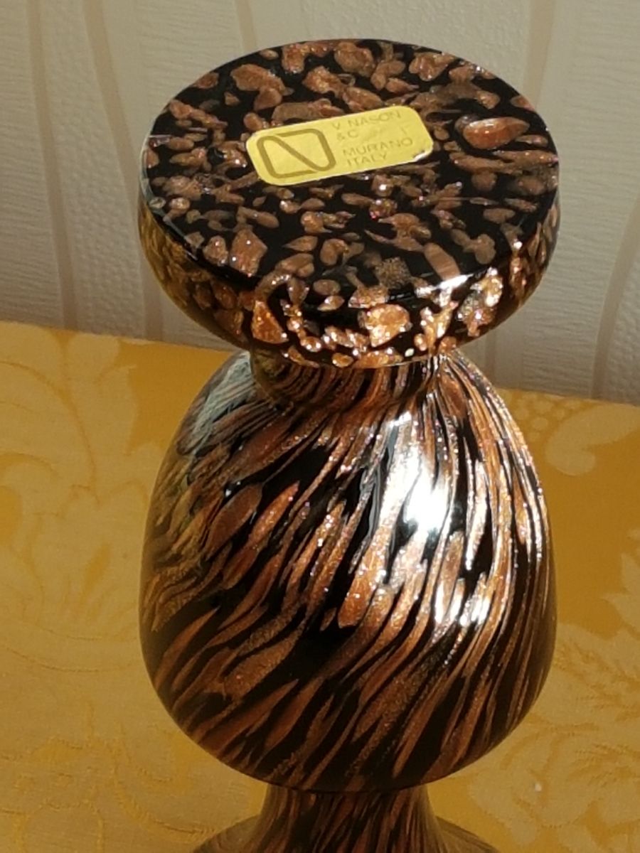 Verre de Murano, estampillé, magnifique vase elegant, noir e