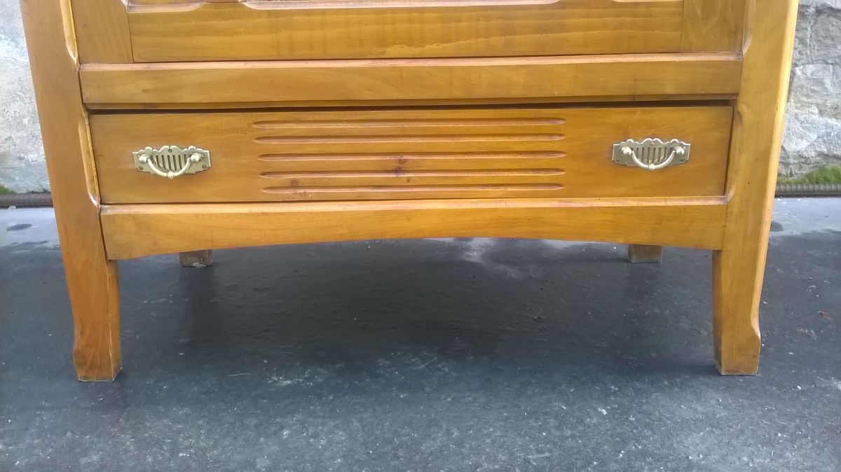 Petite armoire parisienne année 30. Les poignée sont en laiton, elle sont été nettoyer. Intérieur étagère penderie. tiroir en bas ,Hauteur de l armoire 205 cm. Largeur 80 cm. Profondeur 40 cm. Possibilité de la repeindre a votre convenance(devis sur demande).