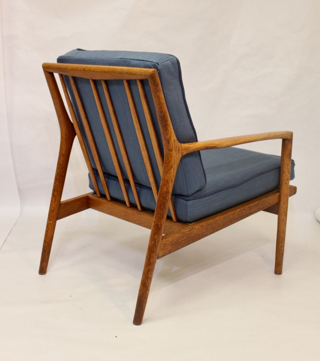 Fauteuil scandinave 1960 structure teck tissu chevron.