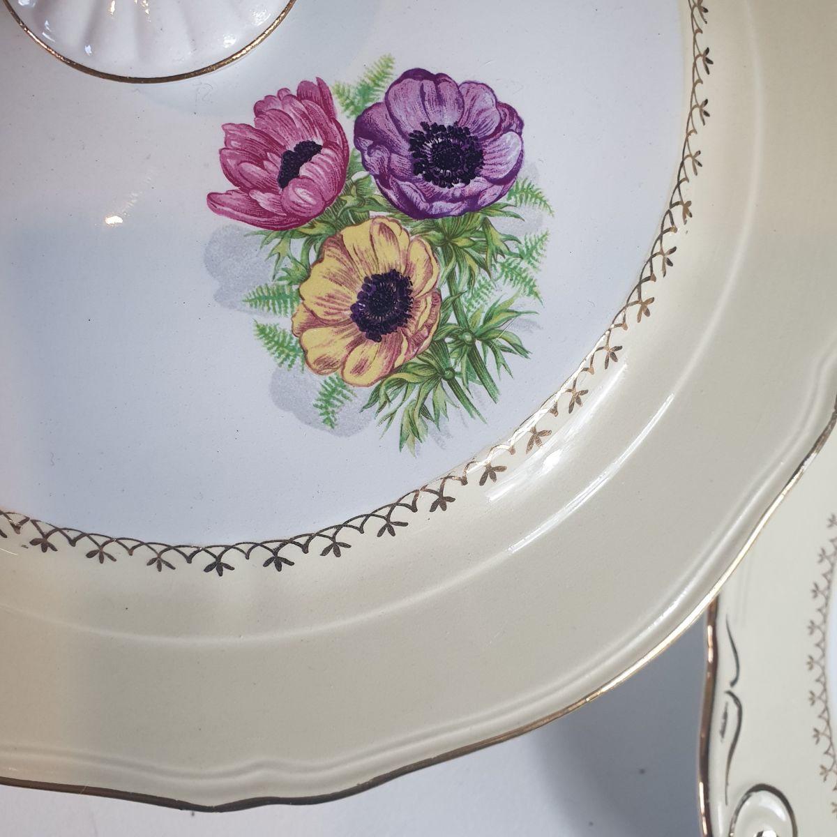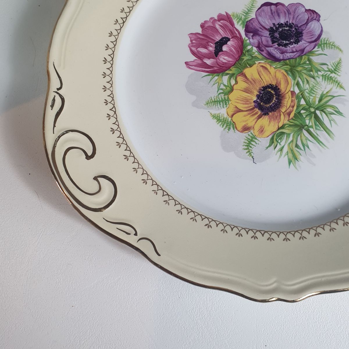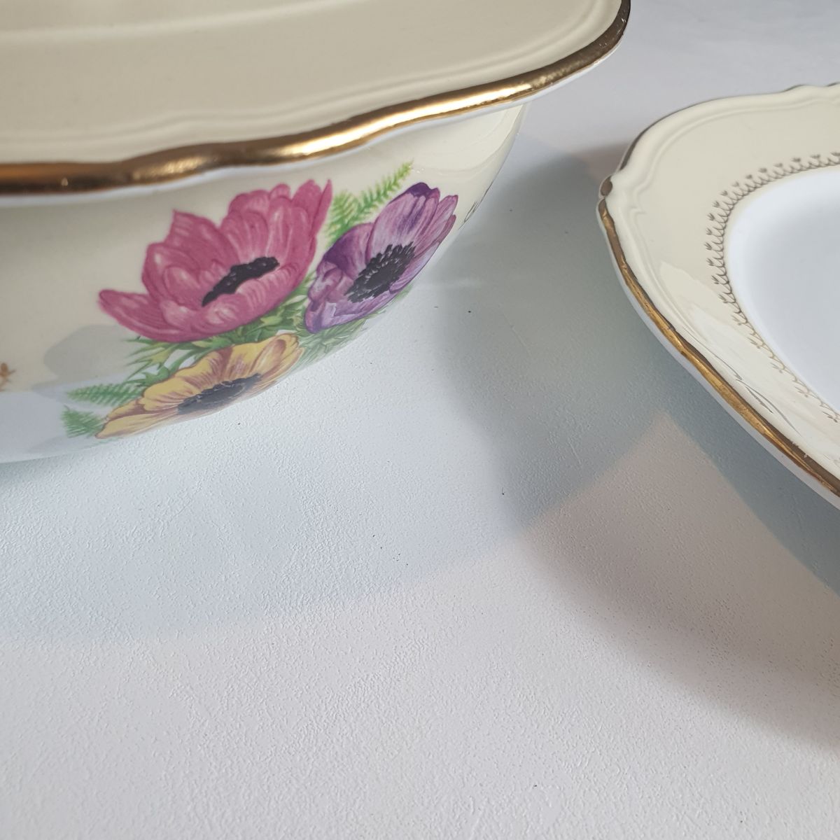Élégants motifs anémone de couleurs blanc et crème. Fin liseret et volutes doré.
