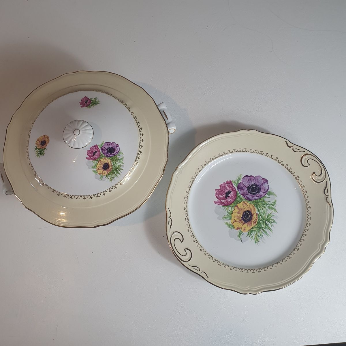 Se compose d'un plat et d'un legumier/soupière avec couvercle.