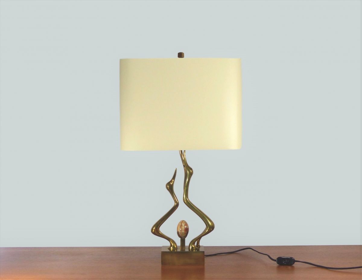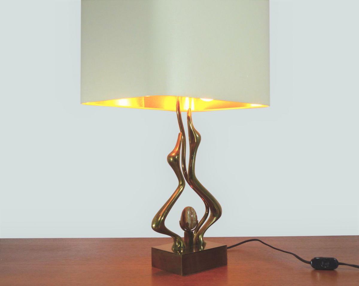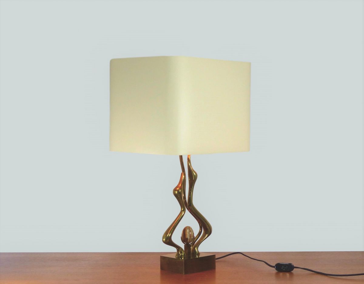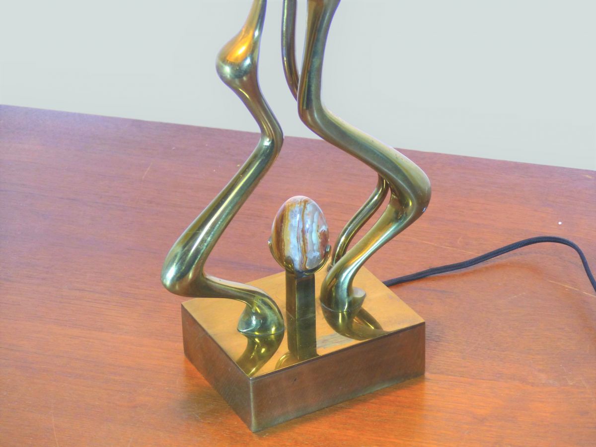 Sculpturale lampe de Willy Daro en laiton massif, aux oiseaux stylisés.
