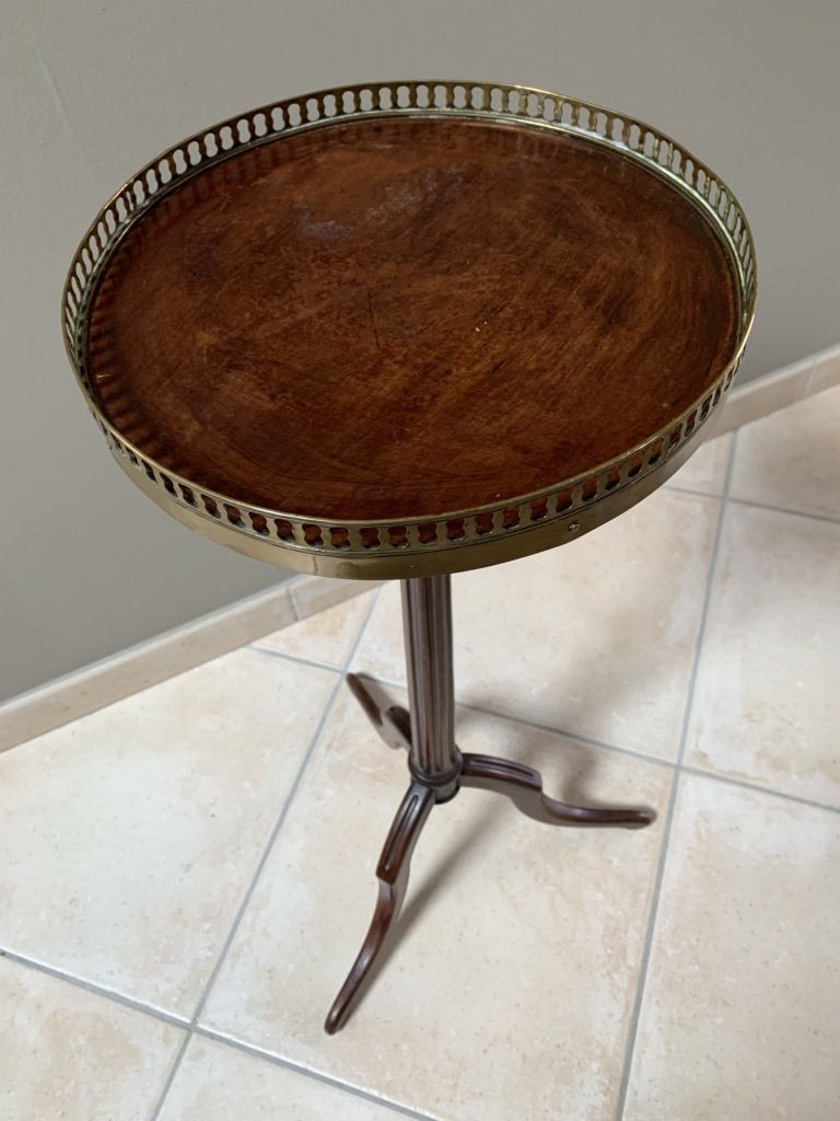 Il y a une galerie ajourée en laiton sur le plateau, bien utile pour que les objets ne tombent pas.
