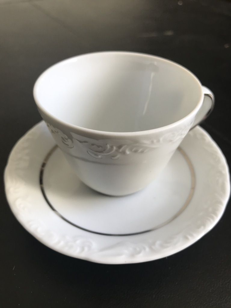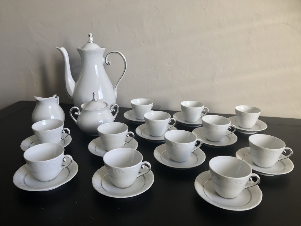 12 tasses, 1 verseuse, 1 sucrier et 1 pot à lait.