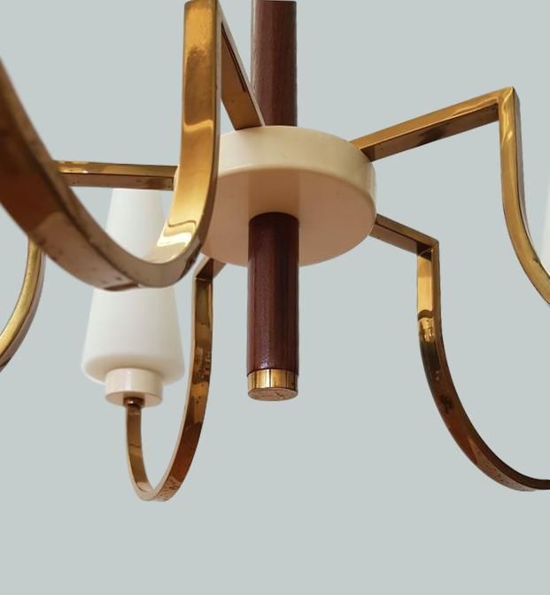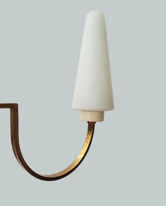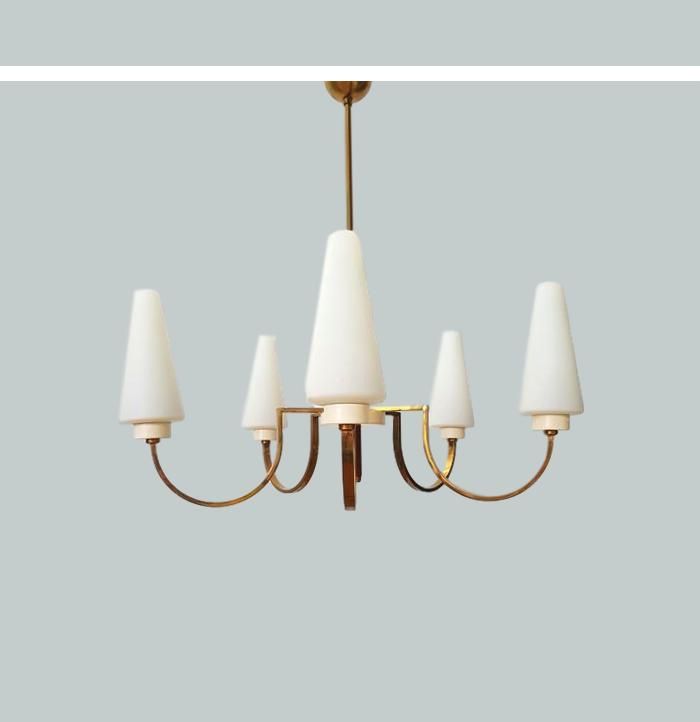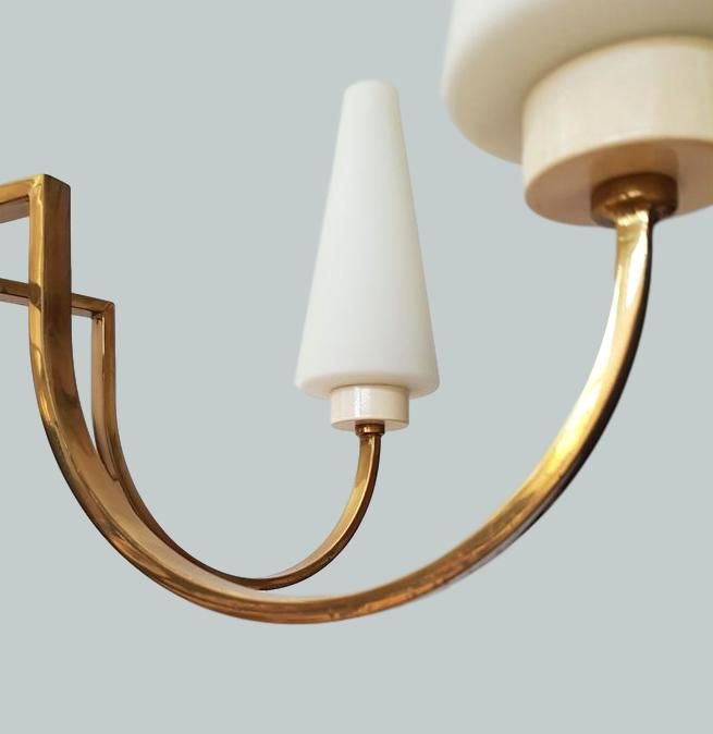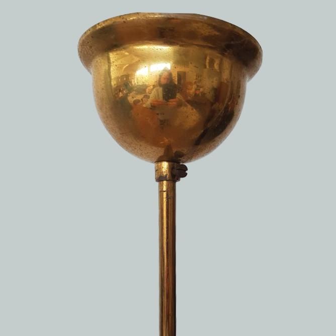 Fût en bois et laiton, opaline, bagues en métal laqué blanc crème