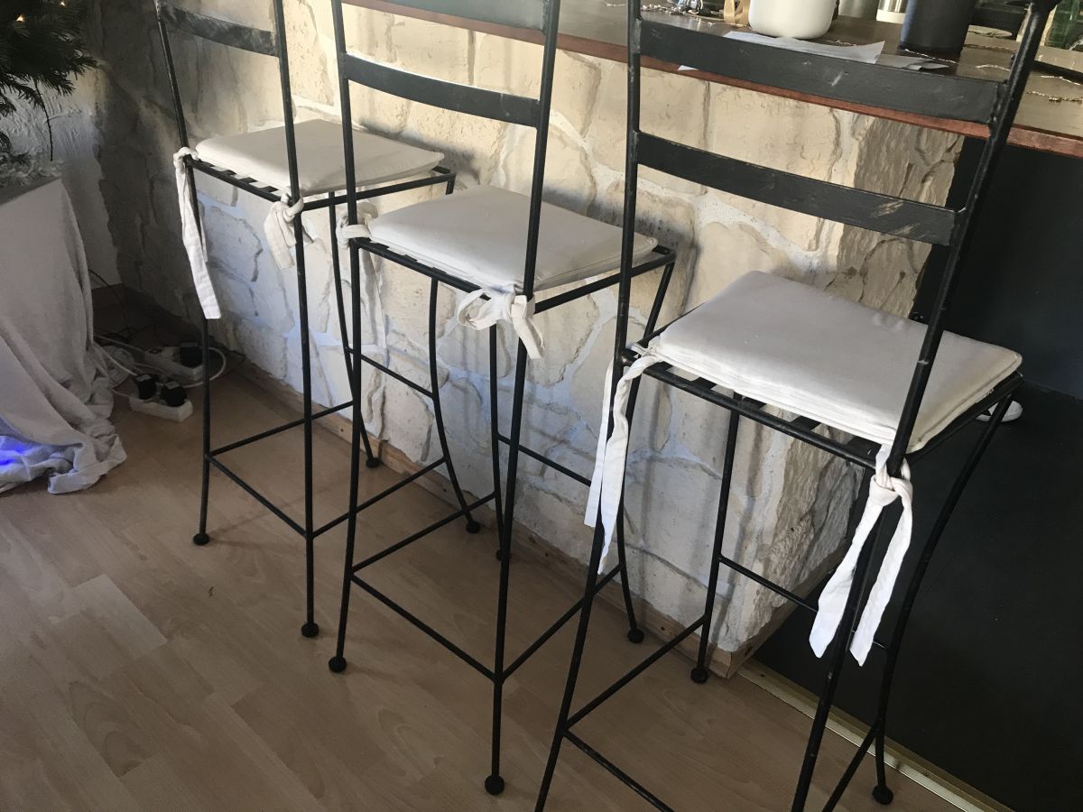 lot de 3 tabourets de bar en fer forgé realise par une artisan local excellent état hauteur assise 80 cm