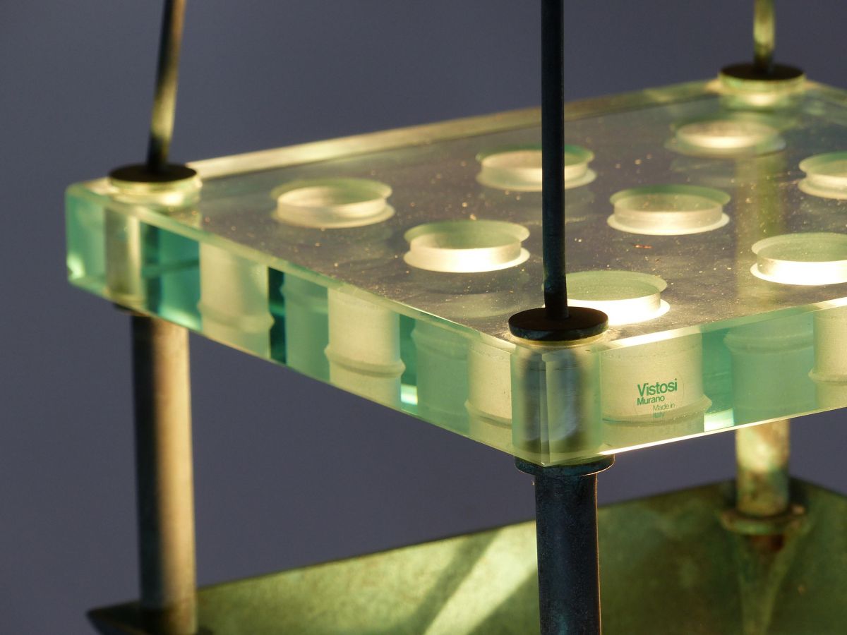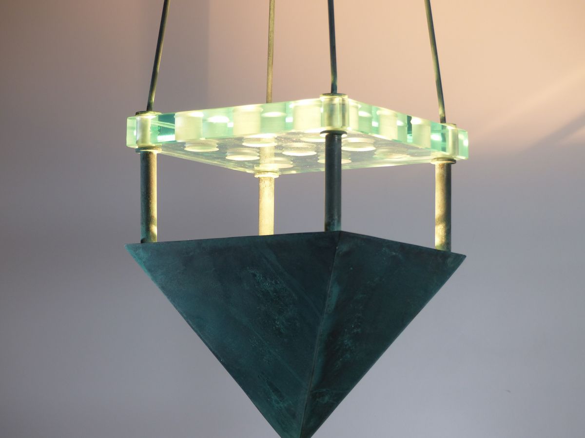 Elégante suspension en bronze à patine verte et verre épais d’Elin Raaberg Nielsen pour Vistosi - 1987