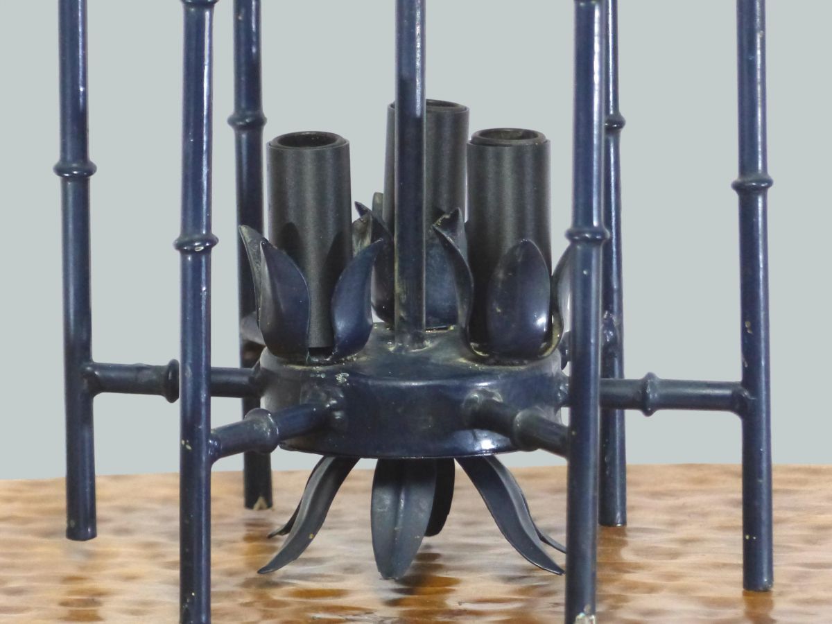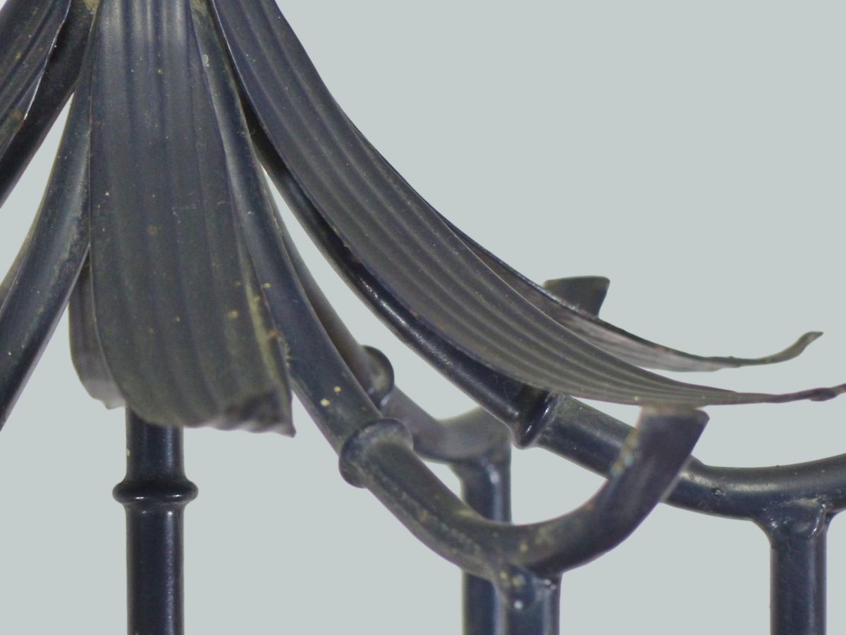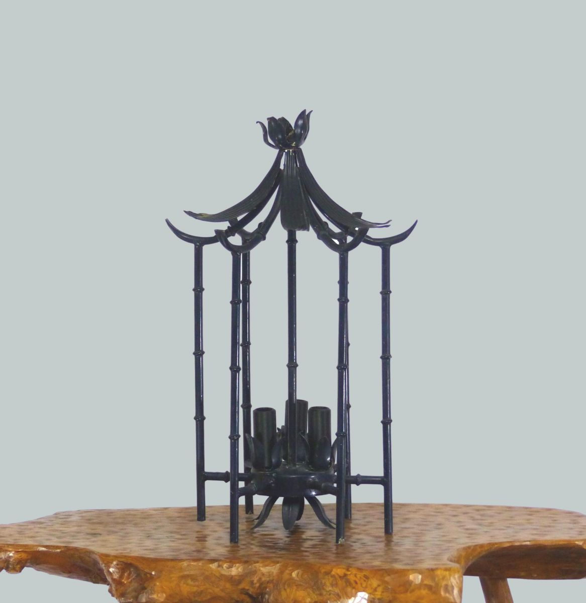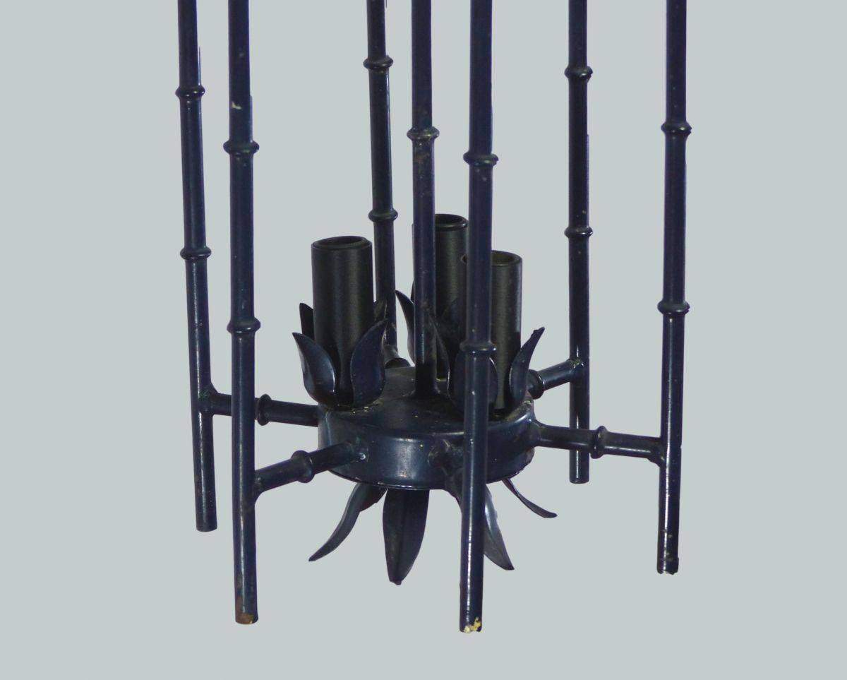 Charmante suspension à trois feux de style pagode en métal laqué bleu nuit.